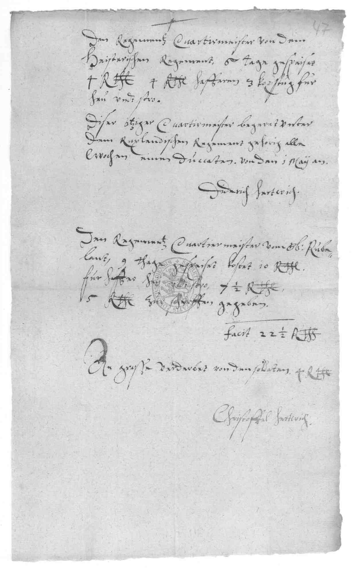 | Titel: | Kosten der Einquartierung und Verpflegung des Rubländischen Regiments |