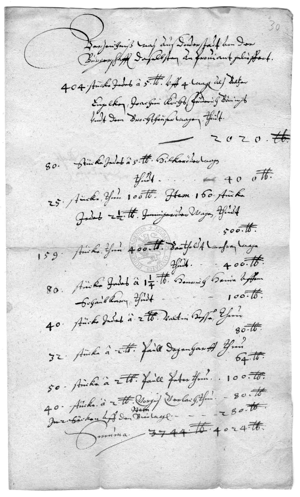 Klassifikation: D 03 - 30-jähriger Krieg: Kontributionen I