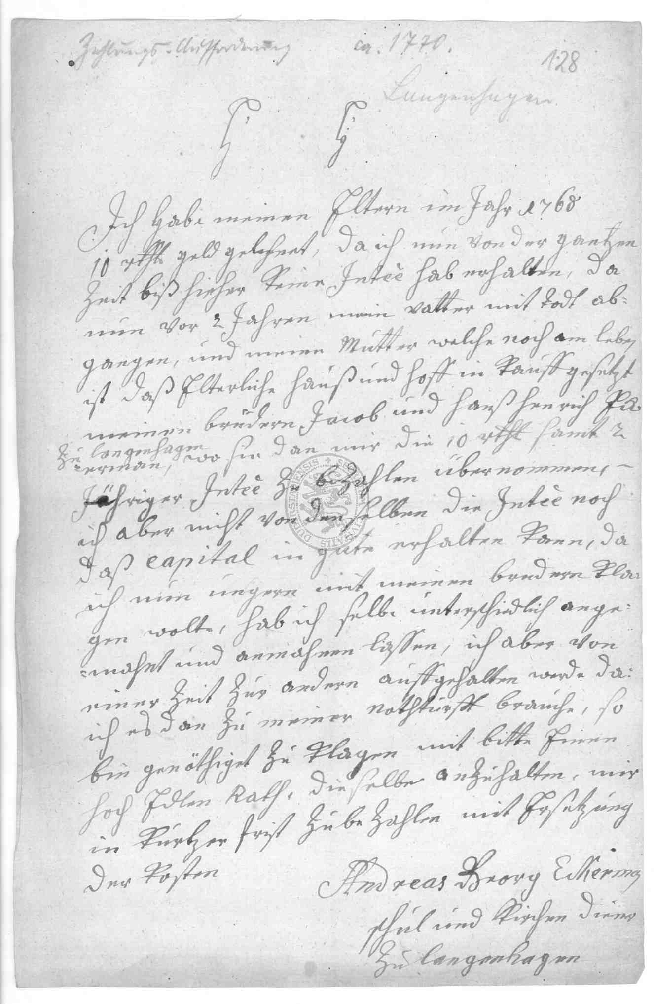 Klassifikation: J III 01 - Streitsachen I (17./18. Jh)