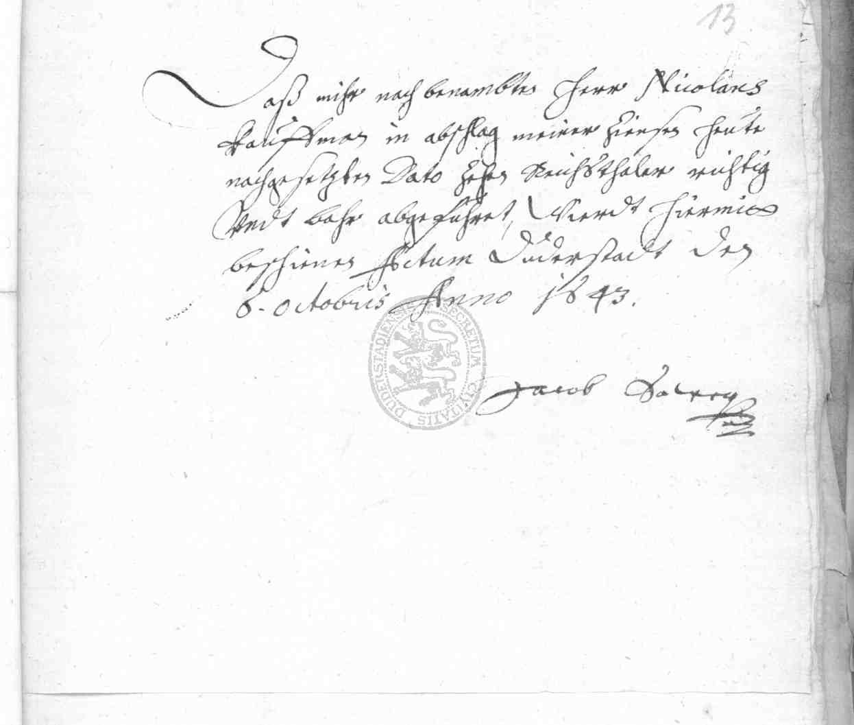 | Titel: | Kapitalschuld des Rats zu Duderstadt gegenüber Jakob Sauer zu Seulingen |