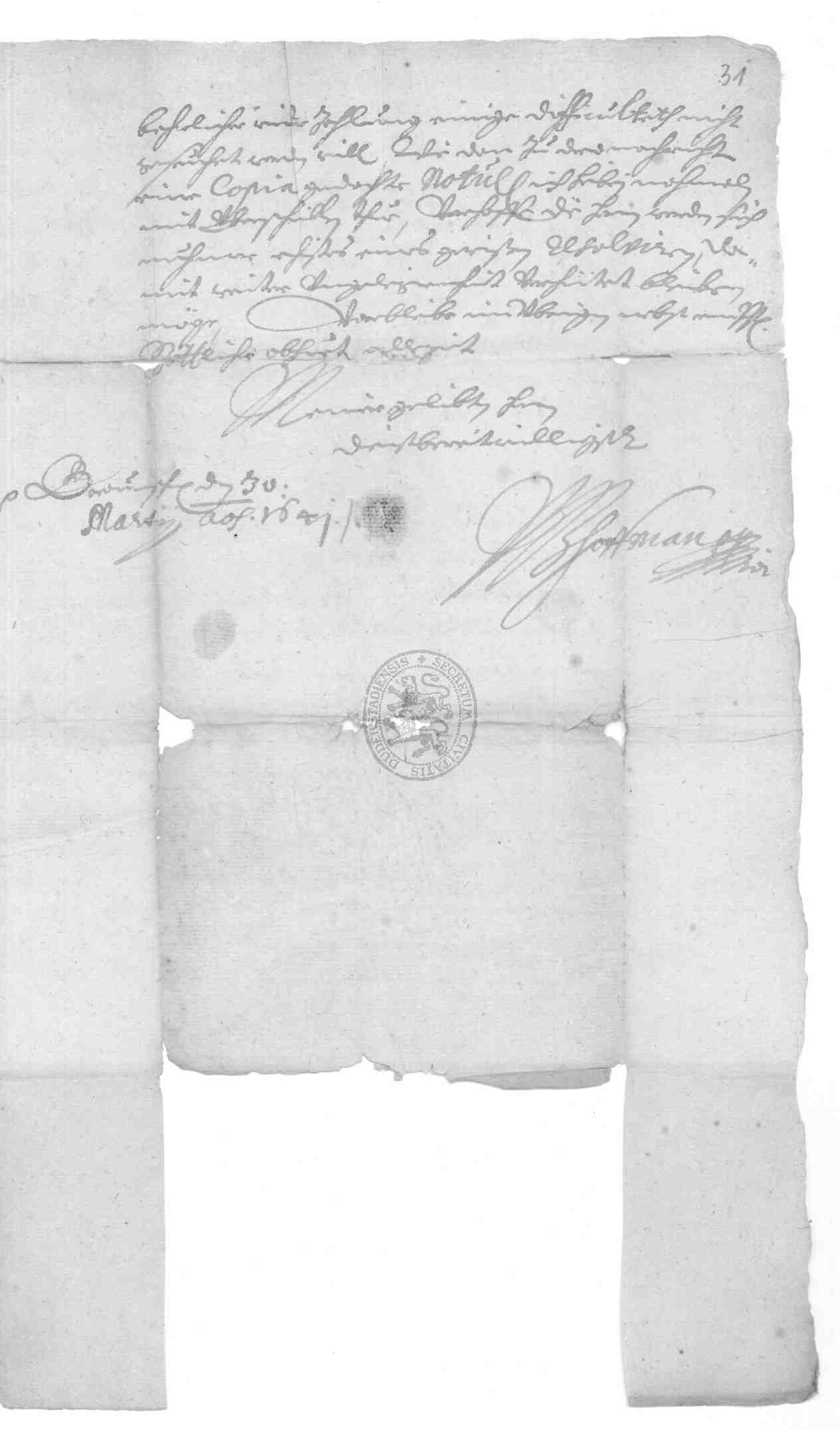 | Titel: | Kapitalschuld des Rats zu Duderstadt gegenüber Viet Gabriel Hoffmann, dem Oberst Wilhelm Harandt sowie dem Freiherrn von Pohlschwitz und Weseritz |
