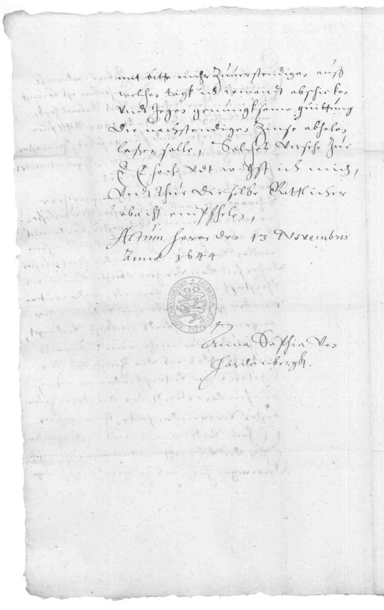 | Titel: | Kapitalschuld des Rats zu Duderstadt gegenüber Viet Gabriel Hoffmann, dem Oberst Wilhelm Harandt sowie dem Freiherrn von Pohlschwitz und Weseritz |
