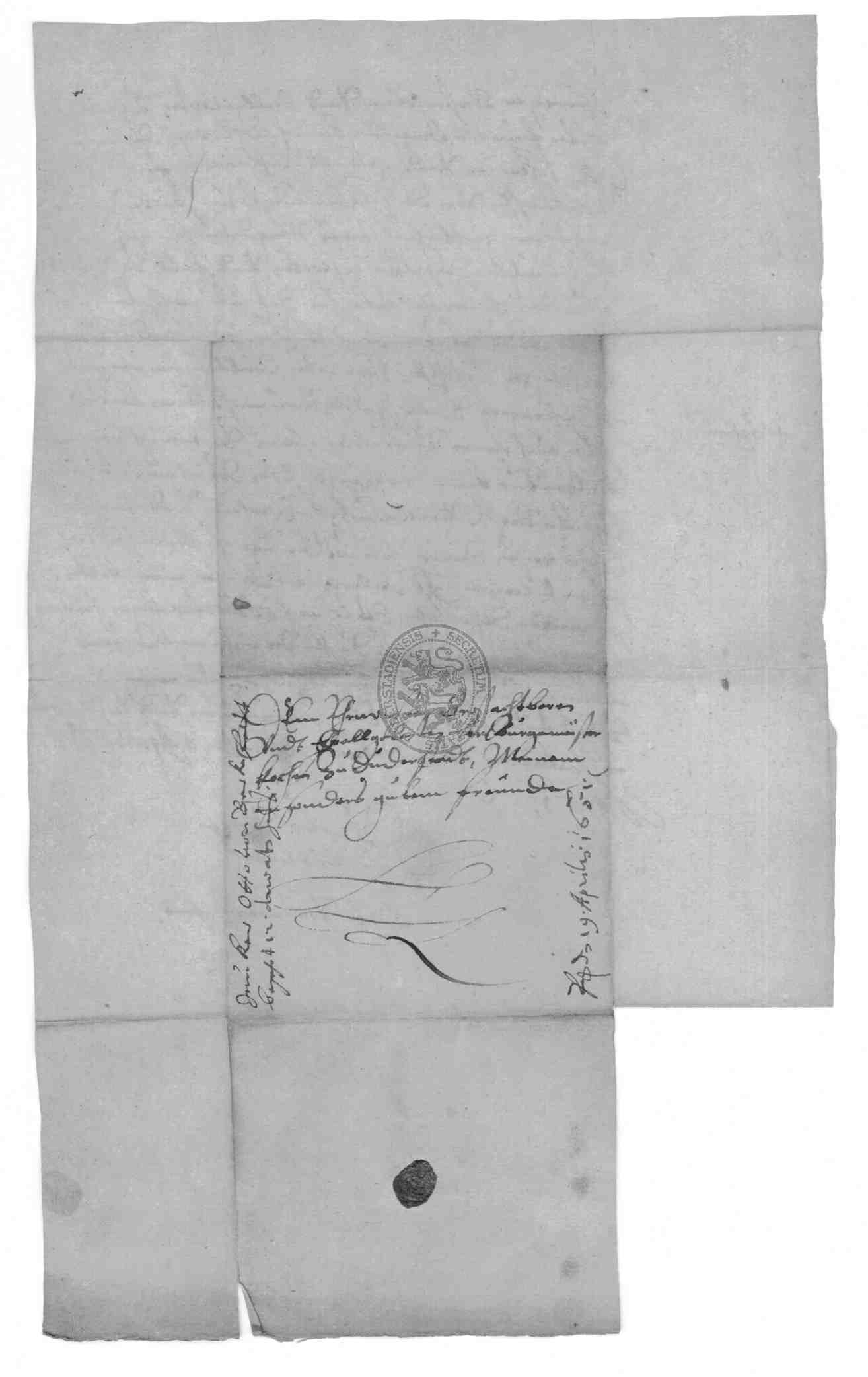 | Titel: | Kapitalschuld des Rats zu Duderstadt gegenüber Viet Gabriel Hoffmann, dem Oberst Wilhelm Harandt sowie dem Freiherrn von Pohlschwitz und Weseritz |
