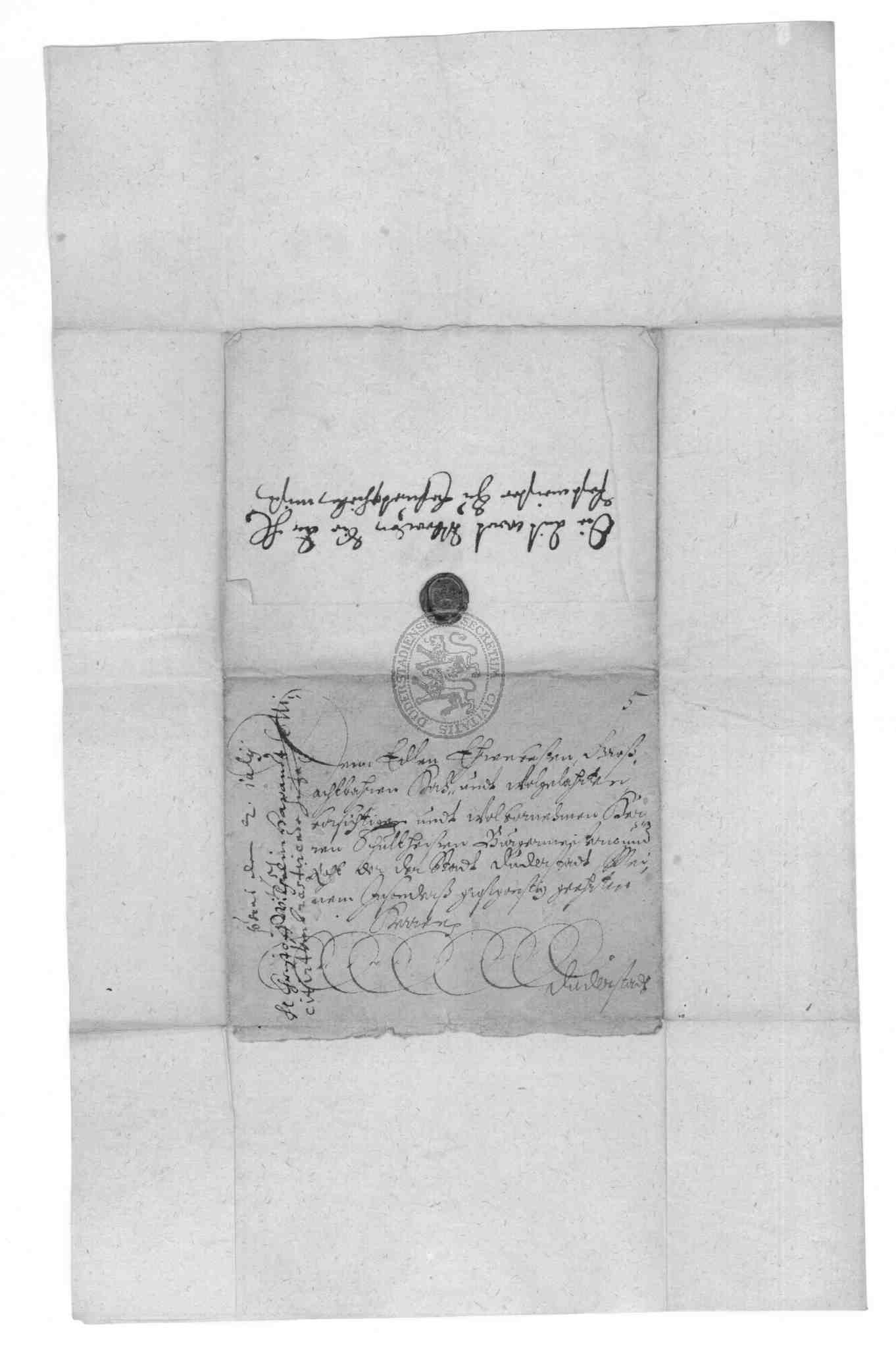 | Titel: | Kapitalschuld des Rats zu Duderstadt gegenüber Viet Gabriel Hoffmann, dem Oberst Wilhelm Harandt sowie dem Freiherrn von Pohlschwitz und Weseritz |
