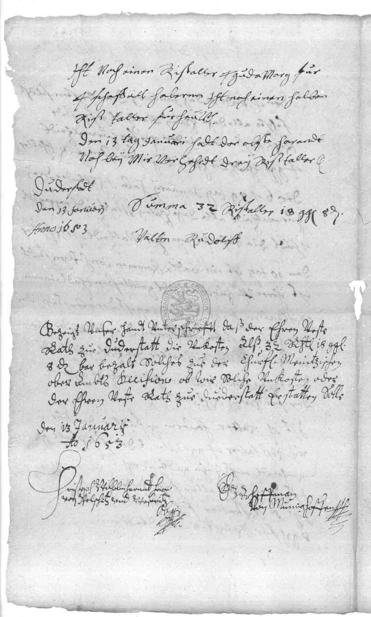 | Titel: | Kapitalschuld des Rats zu Duderstadt gegenüber Viet Gabriel Hoffmann, dem Oberst Wilhelm Harandt sowie dem Freiherrn von Pohlschwitz und Weseritz |