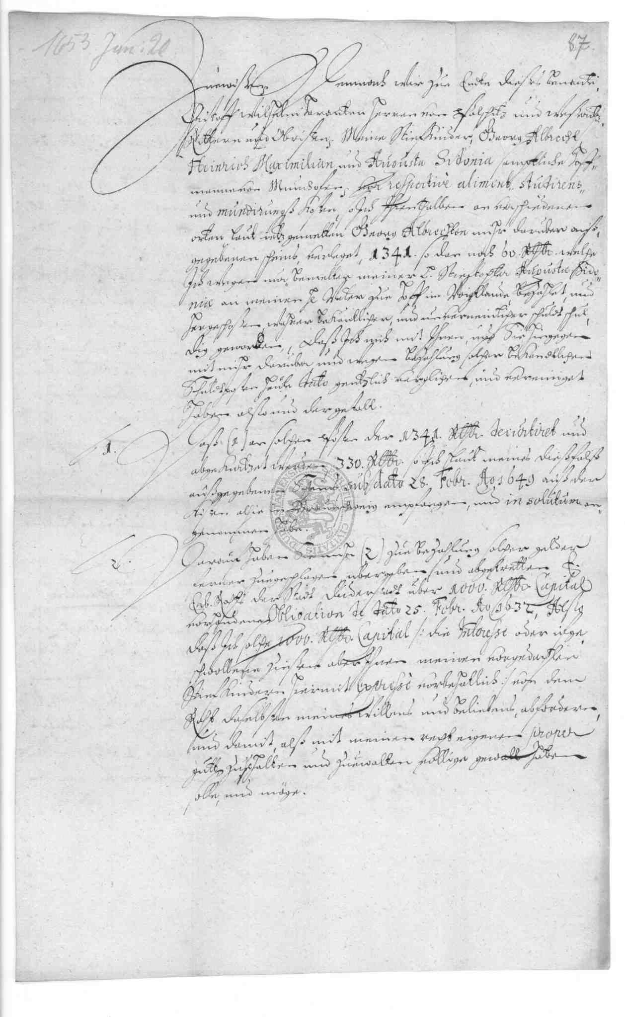 | Titel: | Kapitalschuld des Rats zu Duderstadt gegenüber Viet Gabriel Hoffmann, dem Oberst Wilhelm Harandt sowie dem Freiherrn von Pohlschwitz und Weseritz |