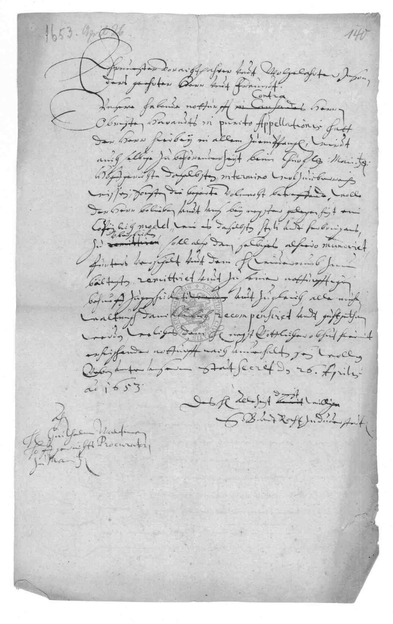 Klassifikation: J III 02 - Streitsachen II , Gerichtsprotokolle (17. Jh)