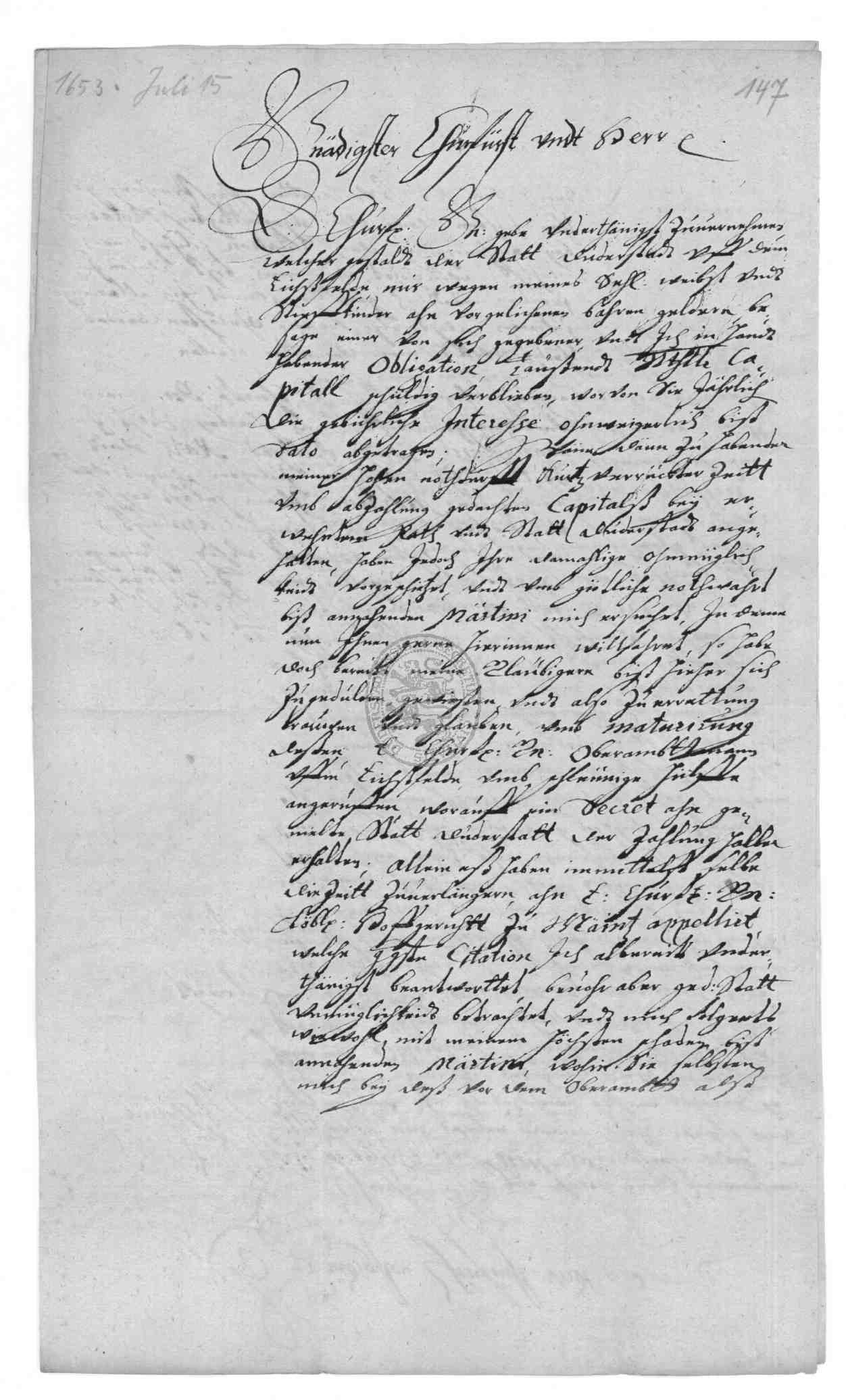 | Titel: | Kapitalschuld des Rats zu Duderstadt gegenüber Viet Gabriel Hoffmann, dem Oberst Wilhelm Harandt sowie dem Freiherrn von Pohlschwitz und Weseritz |