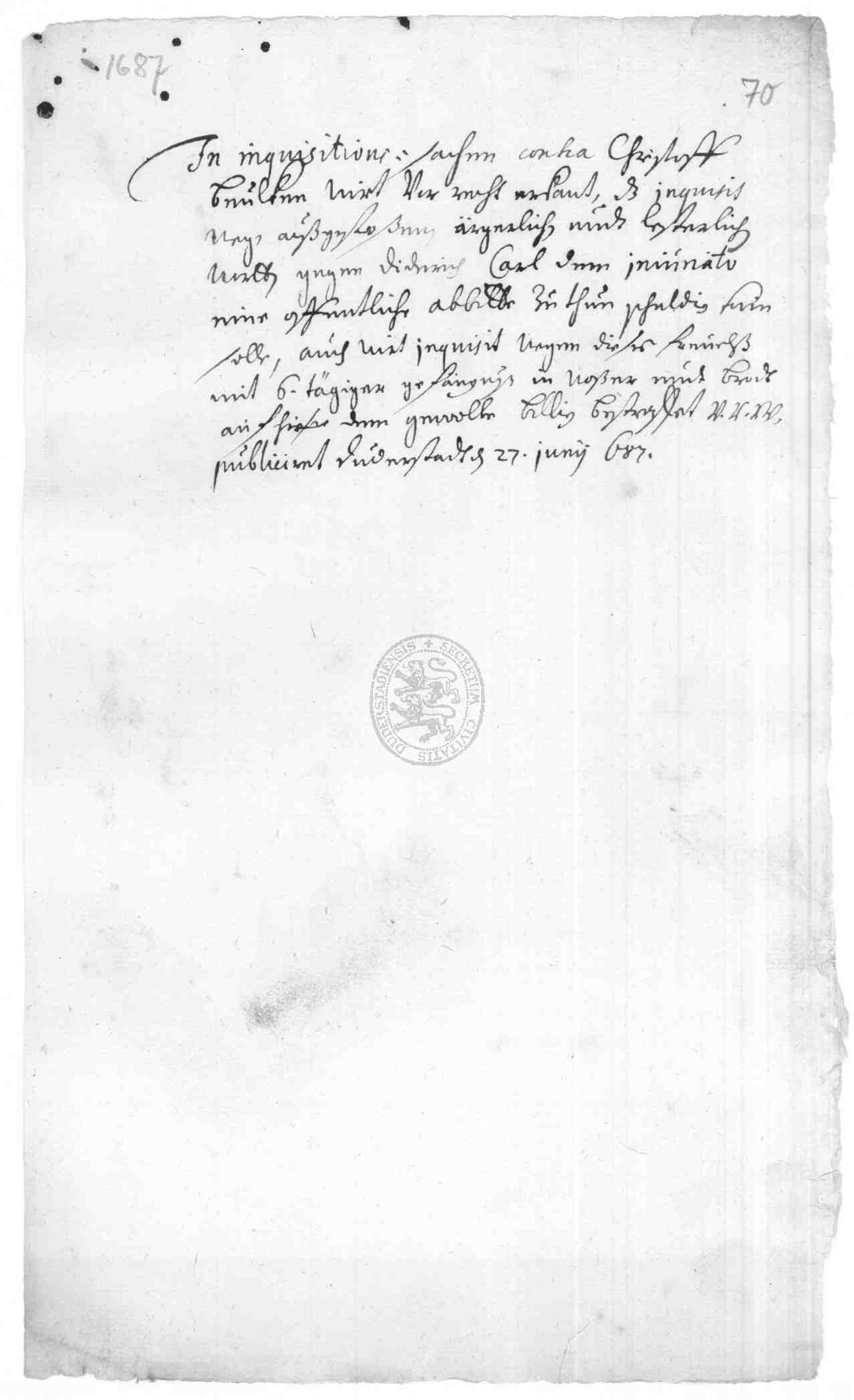 Klassifikation: J V a 03 - Stadtgerichtsprotokolle (17. Jh)