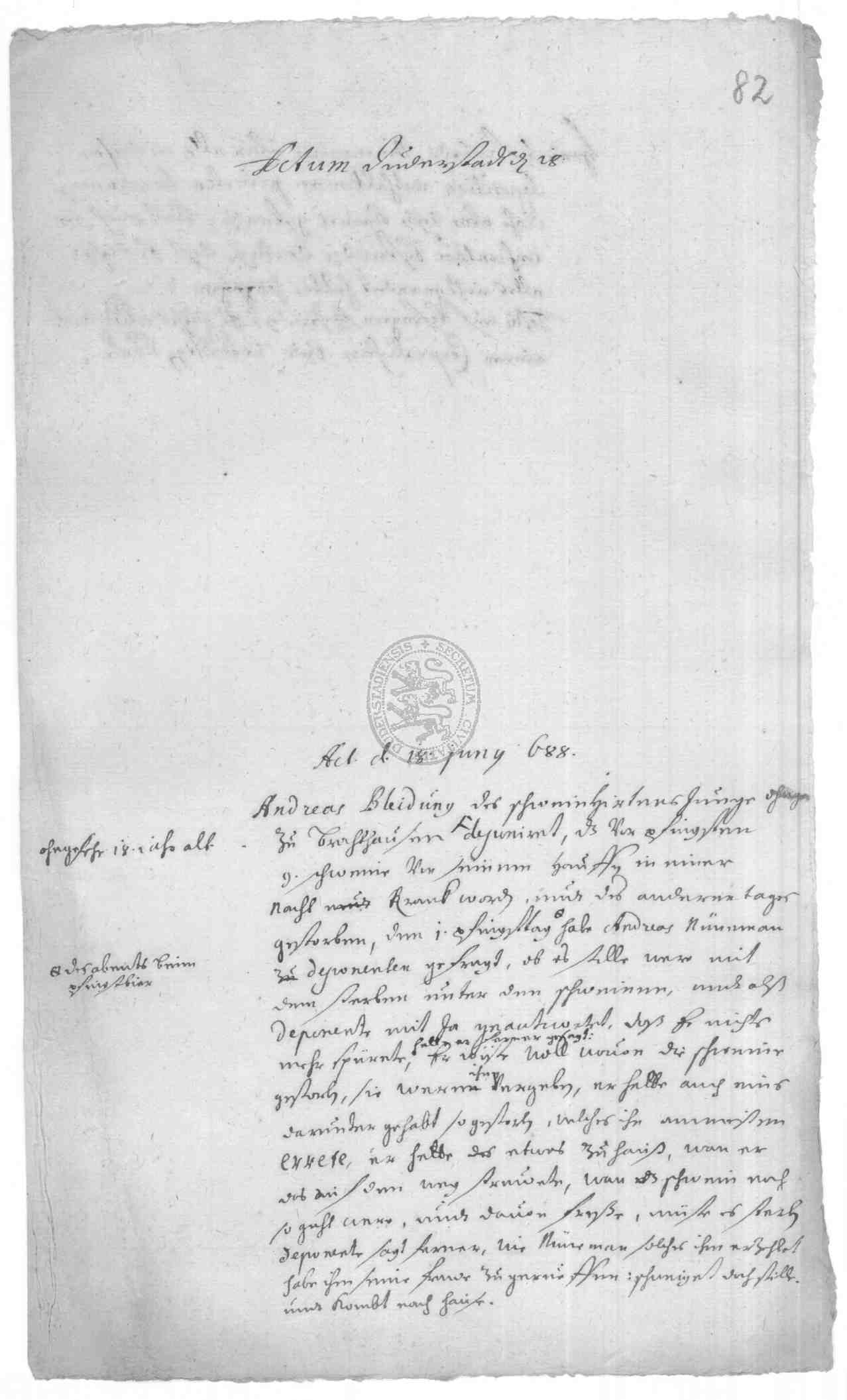 Klassifikation: J V a 03 - Stadtgerichtsprotokolle (17. Jh)