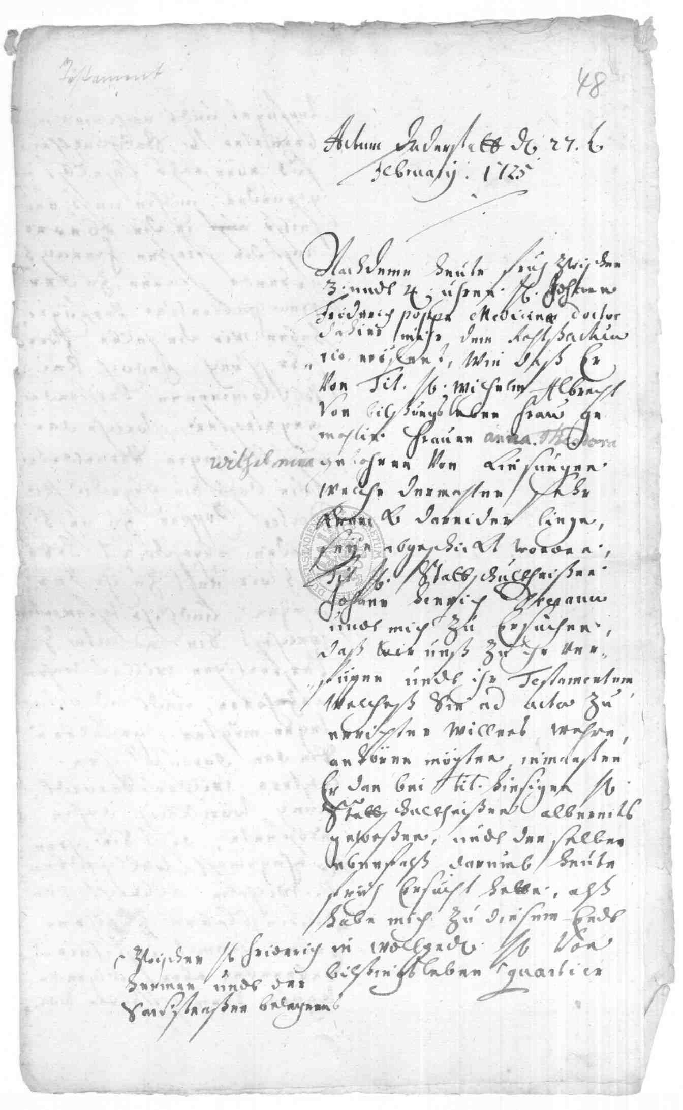 Klassifikation: J VI c 01 - Erbschafts- und Vormundsachen I (17./18. Jh)