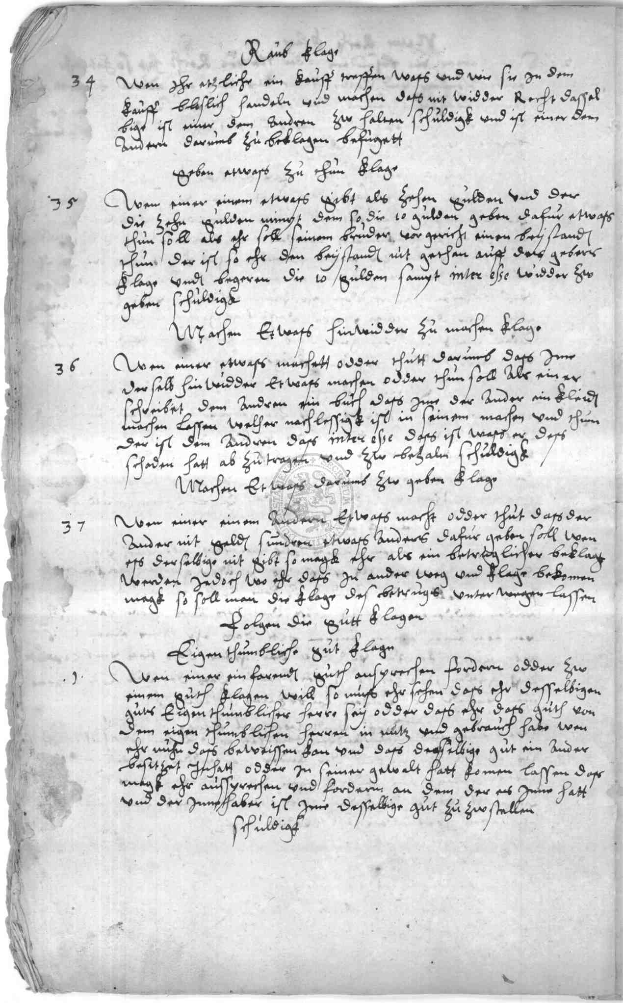 Klassifikation: M I 01 a - Generalia I: Stadtordnungen (15.-19. Jh)