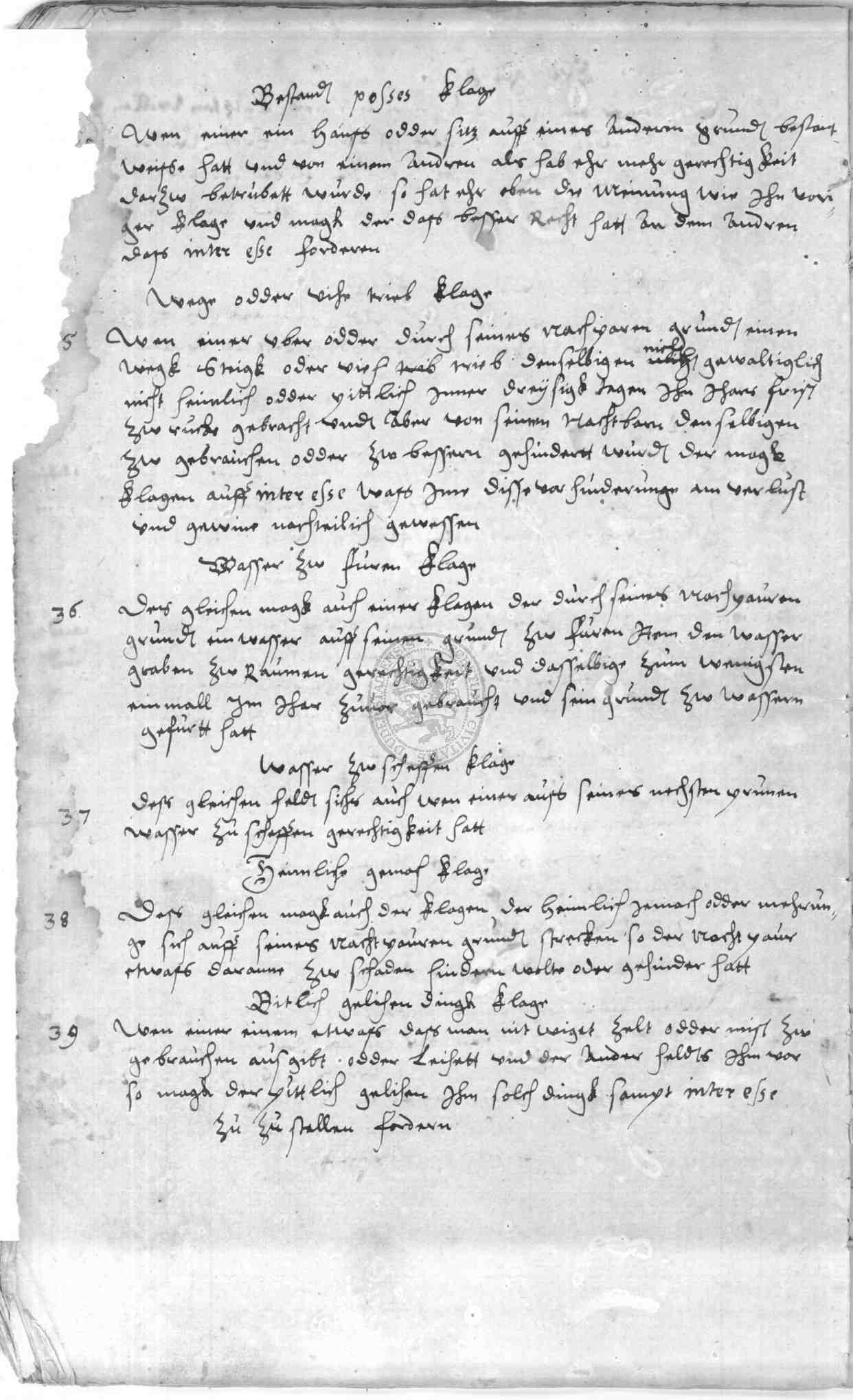 Klassifikation: M I 01 a - Generalia I: Stadtordnungen (15.-19. Jh)