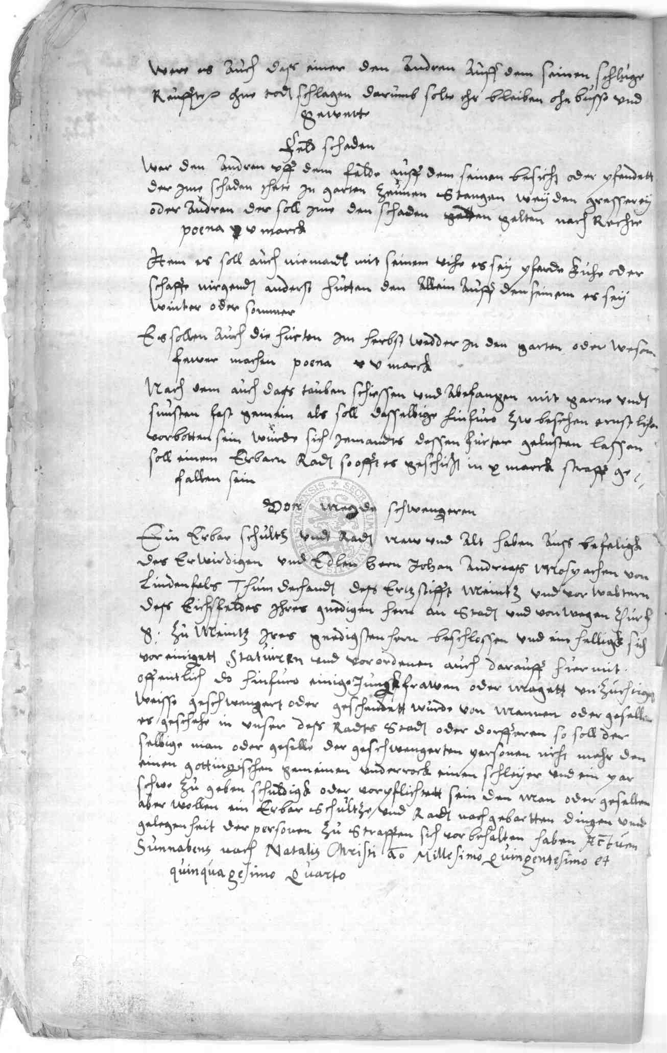 Klassifikation: M I 01 a - Generalia I: Stadtordnungen (15.-19. Jh)