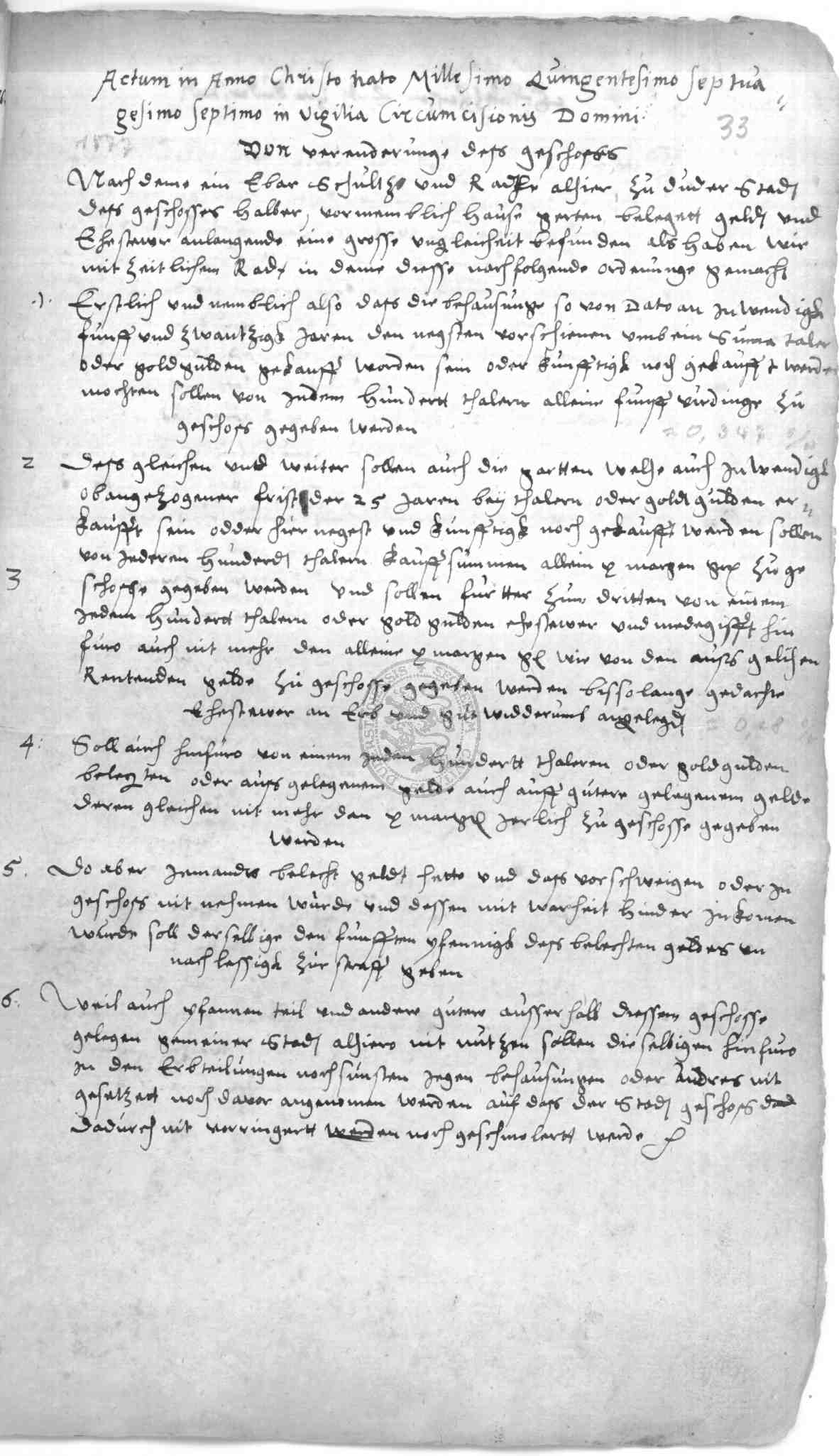 Klassifikation: M I 01 a - Generalia I: Stadtordnungen (15.-19. Jh)