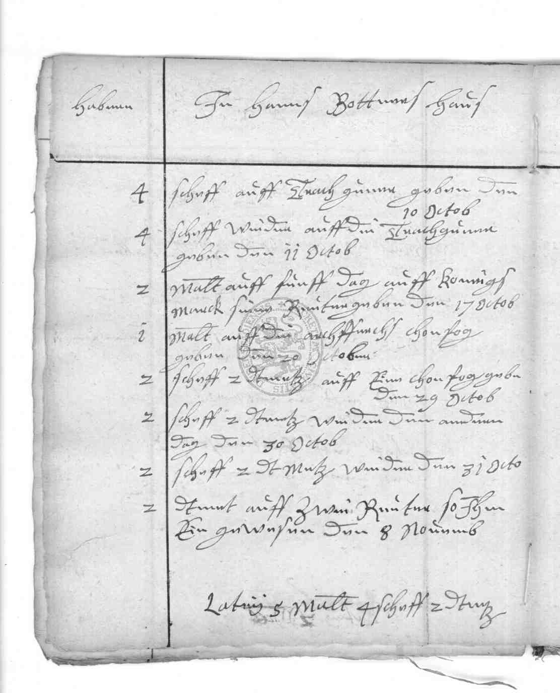 | Titel: | Einnahme der Kämmerei an Hafer |