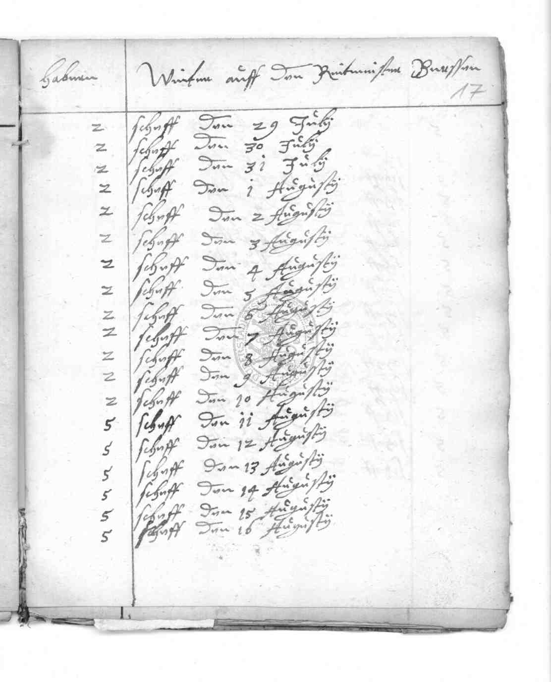 | Titel: | Einnahme der Kämmerei an Hafer |