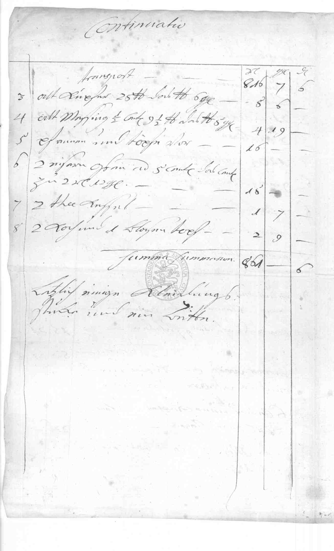 Klassifikation: M VII b 01 - Kämmereisachen: Rechnungsführung (16.-18. Jh)