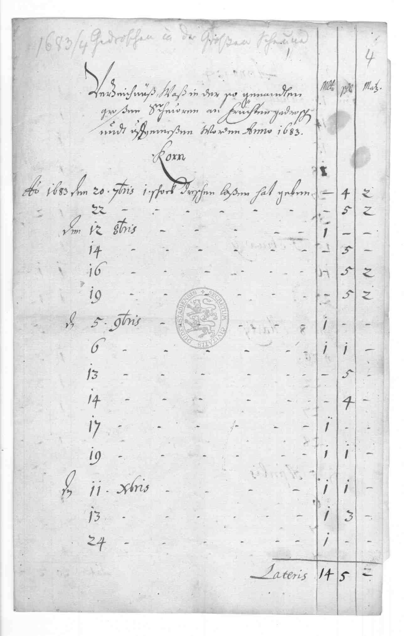 Klassifikation: M VII b 01 - Kämmereisachen: Rechnungsführung (16.-18. Jh)