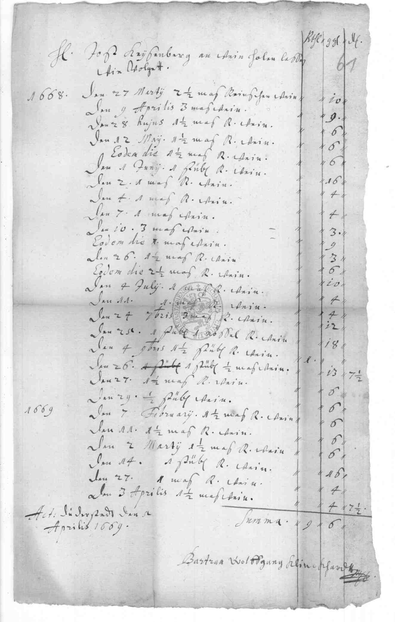 | Titel: | Rechnungen des Weinkellers |