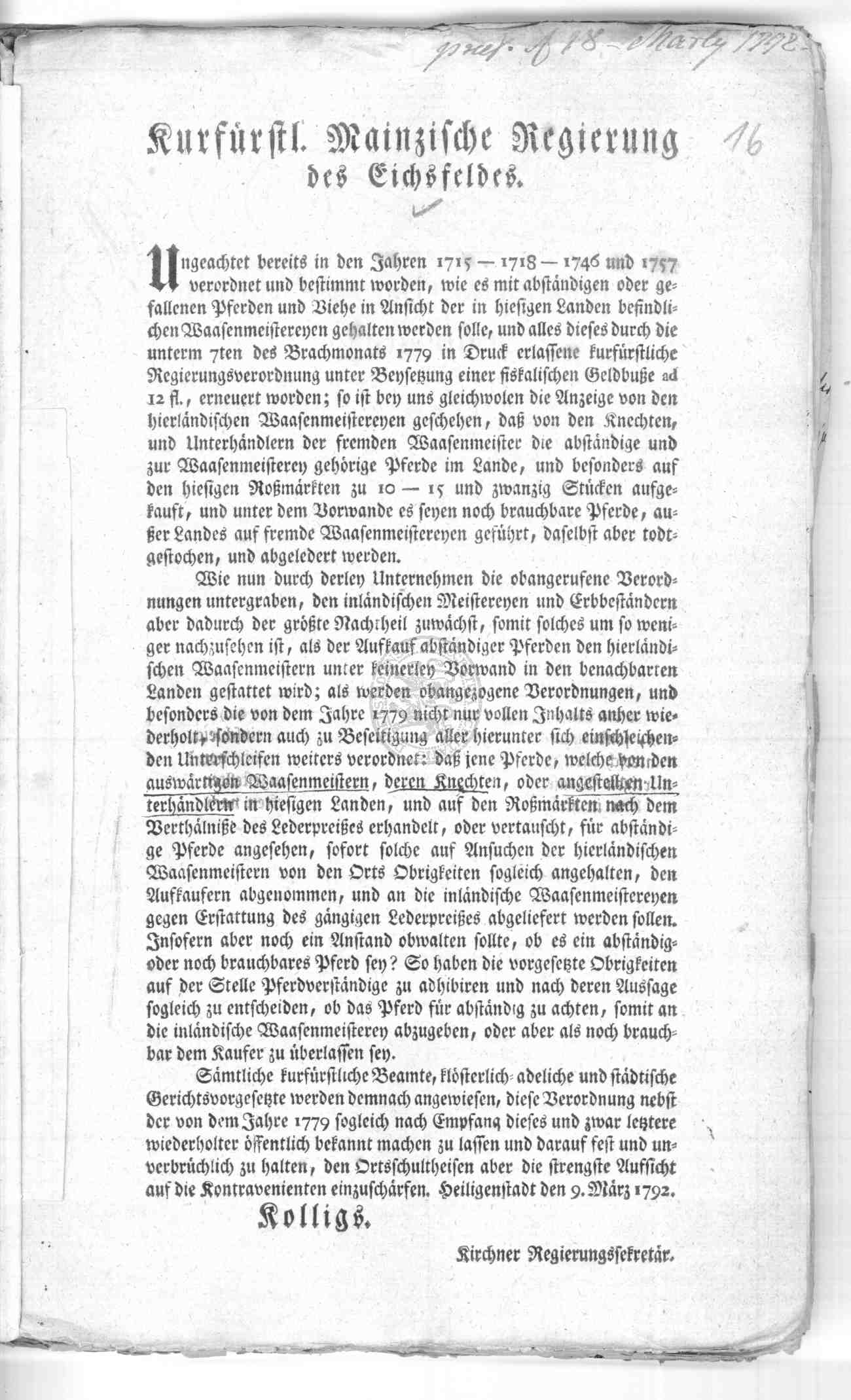 | Titel: | Verordnungen über die Gerechtsamen der Wasenmeisterei |