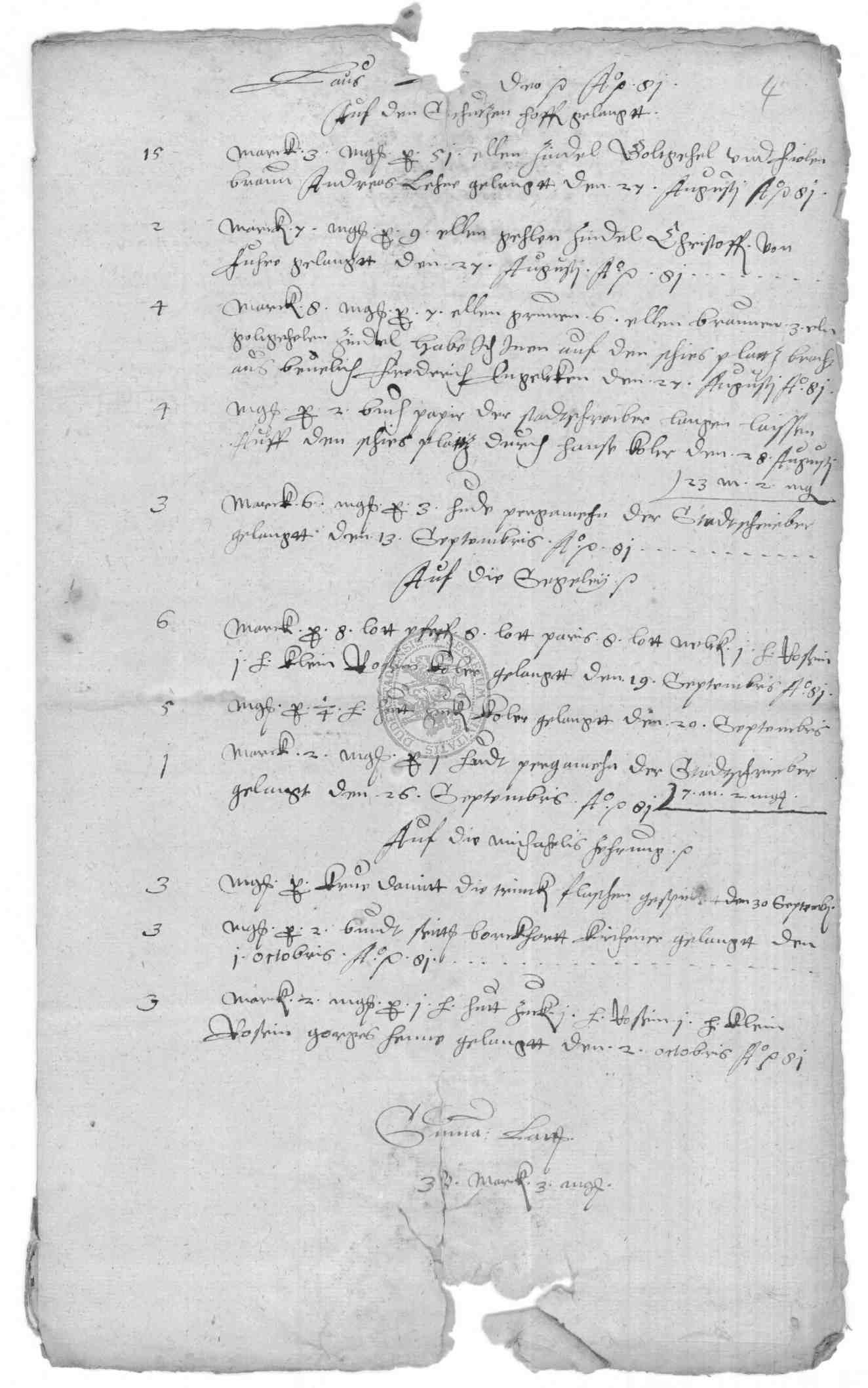 Klassifikation: M VII c 01 - Kämmereisachen: Ausgaben (16.-19. Jh)