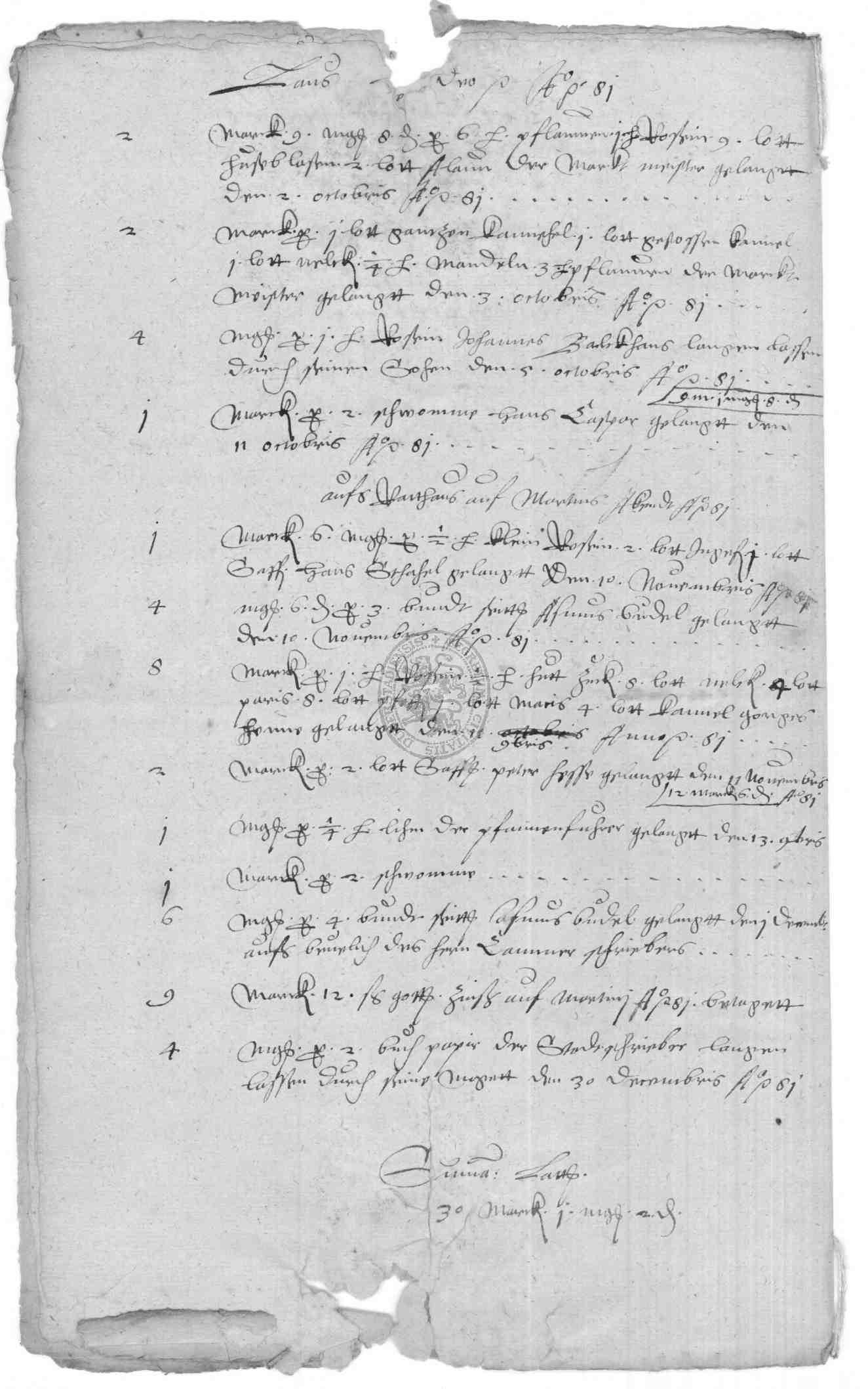 Klassifikation: M VII c 01 - Kämmereisachen: Ausgaben (16.-19. Jh)