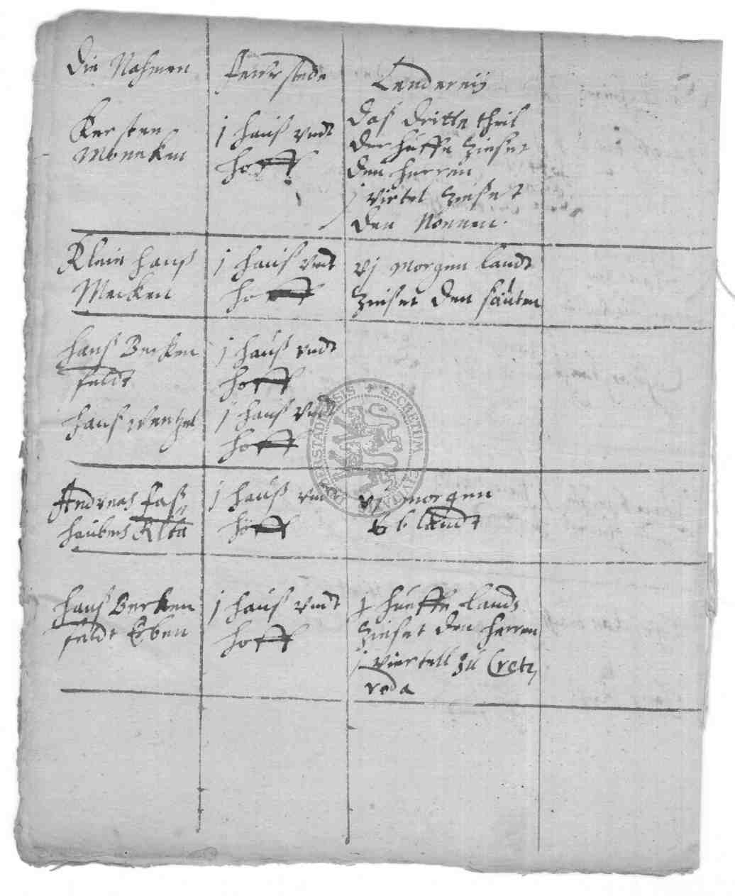 | Titel: | Spezifikationen der Dörfer Mingerode, Brochthausen, Hilkerode, Fuhrbach und Langenhagen über Herdstätten, Ländereien, Wiesen und Gehölze |