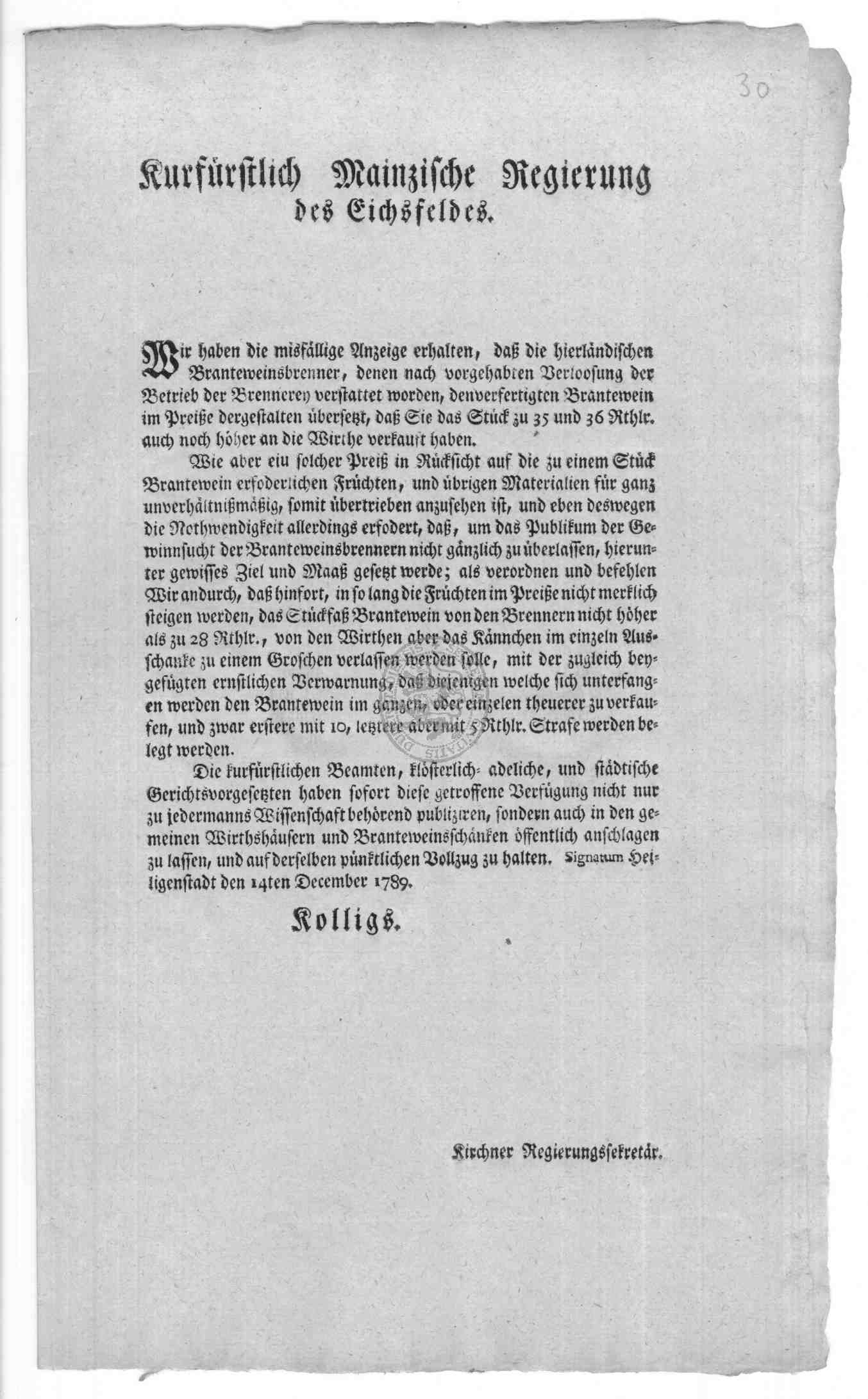 | Titel: | Verordnungen und Erlasse zur Branntweinbrennerei in Duderstadt |
