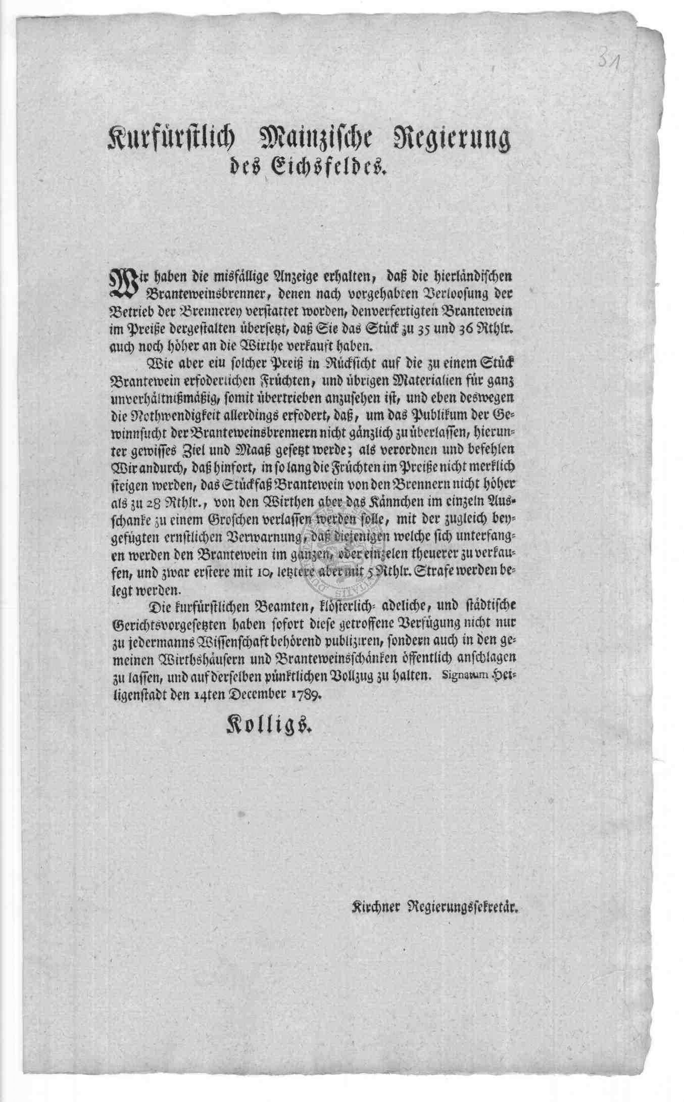 | Titel: | Verordnungen und Erlasse zur Branntweinbrennerei in Duderstadt |