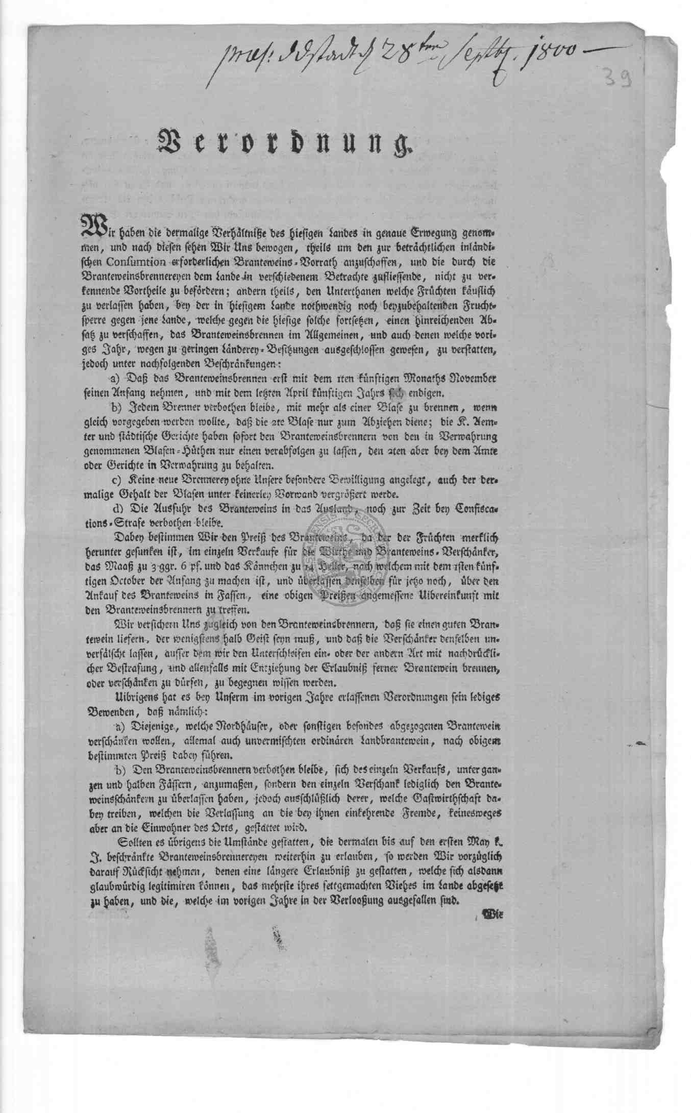| Titel: | Verordnungen und Erlasse zur Branntweinbrennerei in Duderstadt |