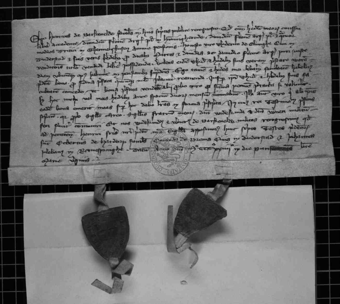 | Regest: | Heinrich von Barkefeld, Knappe, verkauft 1/2 Vierdung zu Immingerode und 1/2 Vierdung nebst 4 Scheffeln Weizen in Germershausen jährlicher Rente dem Bürger Dietrich von Elbingen für 2 1/2 Mark und 1/2 Vierdung (Im Übrigen gleichlautend mit der vorigen Nummer, auch die Zeugen sind dieselben) |