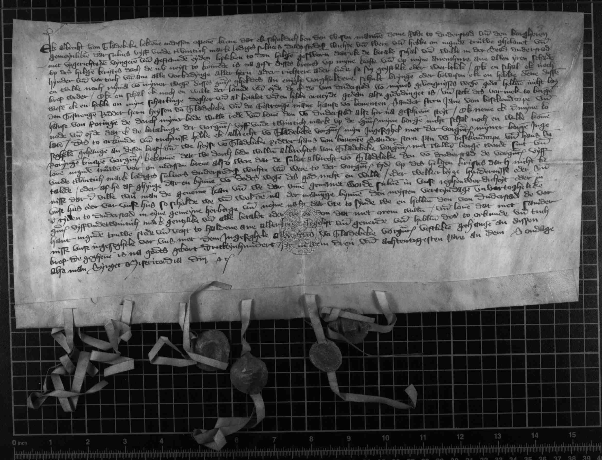 | Regest: | Albrecht von Gladebeck erklärt der Stadt 25 Duderstädter Mark schuldig zu sein und verspricht dieselben am nächsten Weihnachtsfest zu Duderstadt zu bezahlen |