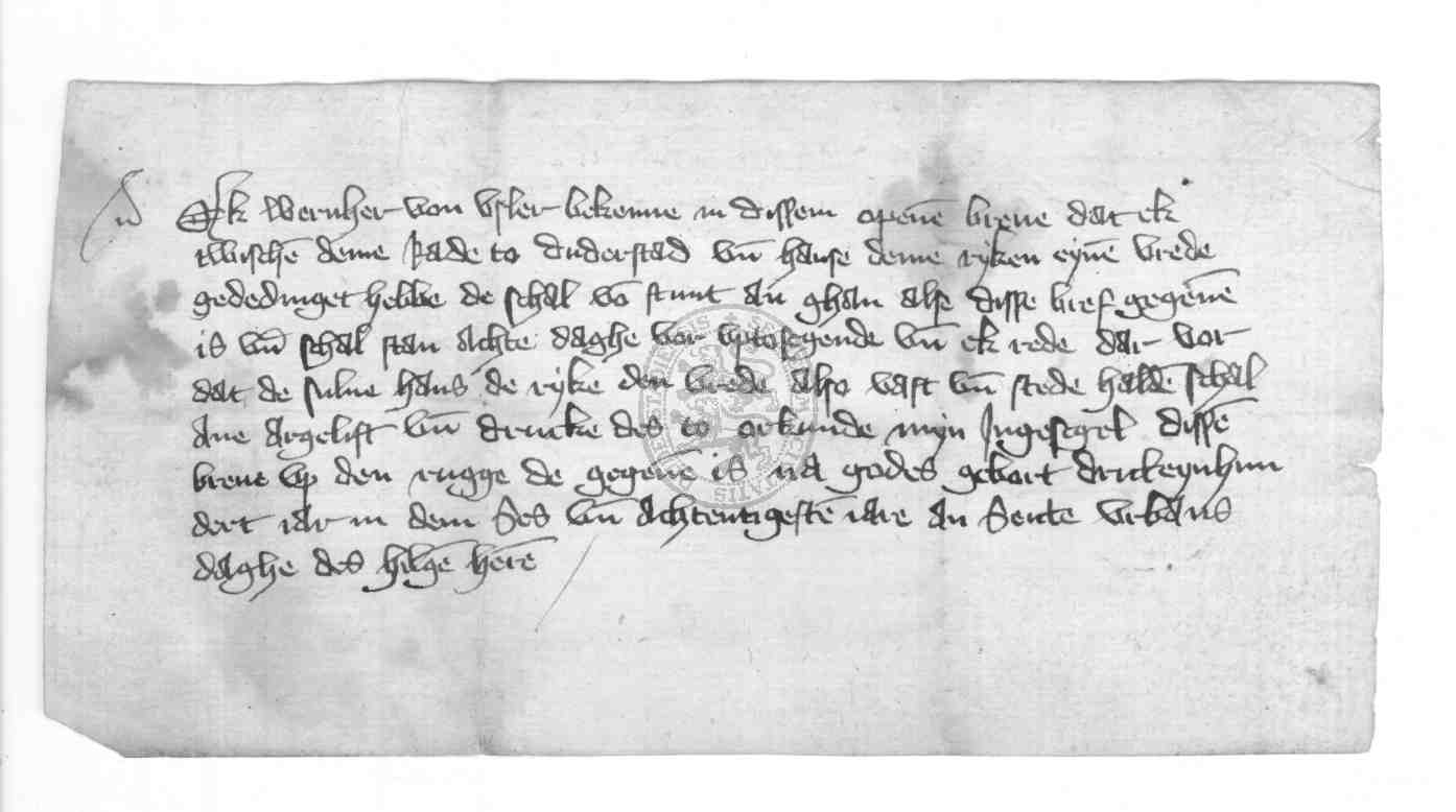 | Regest: | Werner von Uslar bestätigt einen zwischen dem Rate und Hans dem Reichen geschlossenen Frieden |
