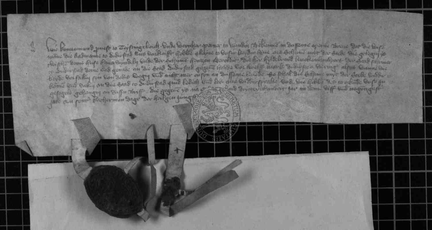 | Regest: | Revers des Propstes Konemund zu Teistungenburg und des Pfarrers Werner zu Wehnde über den Kauf einer Scheune |