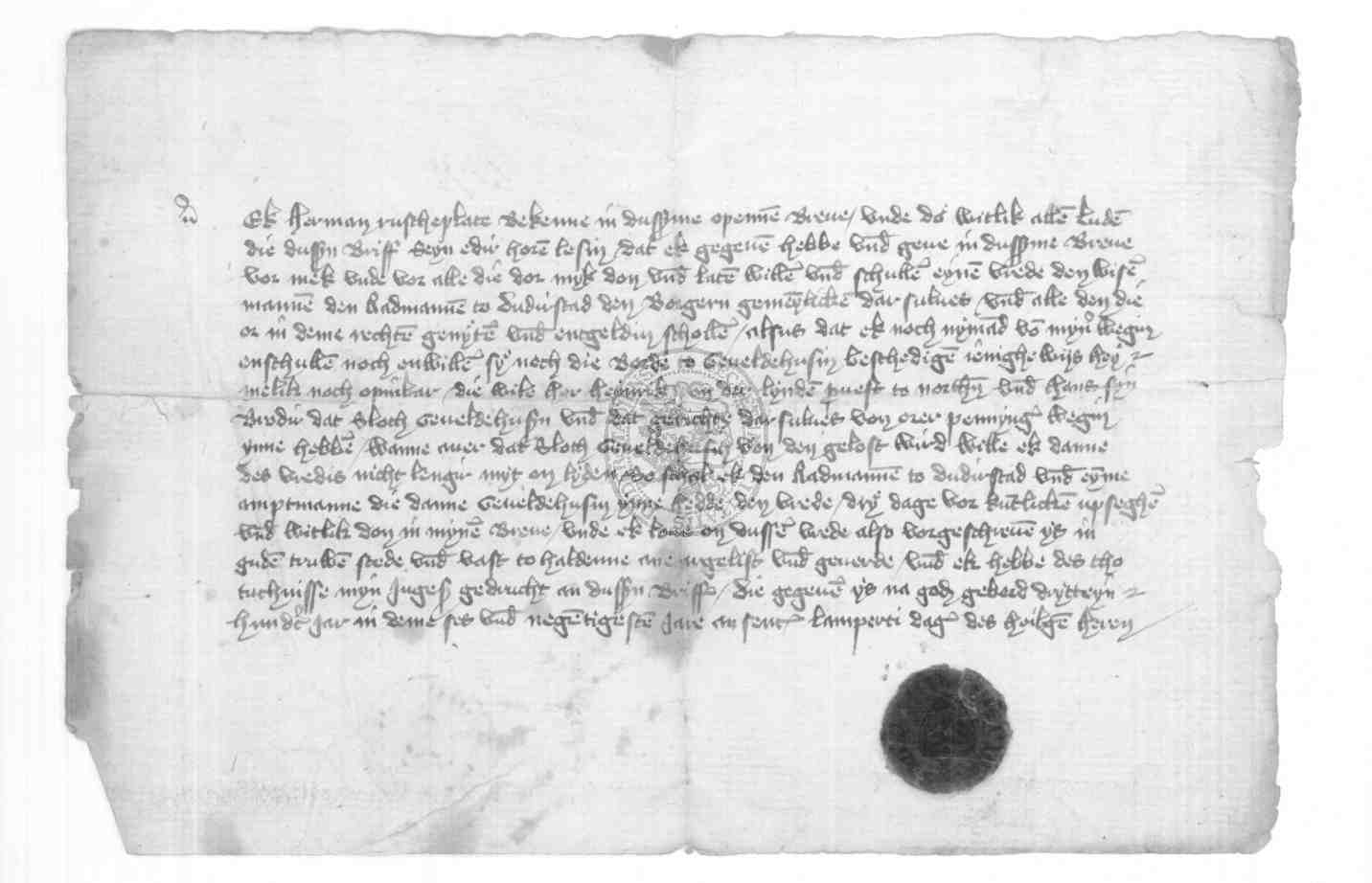 | Regest: | Hermann Ruscheplat verspricht der Stadt und der Börde Gieboldehausen auf so lange Friede, als Heinrich und Hans von der Linden das Schloß Gieboldehausen als Pfand besitzen |