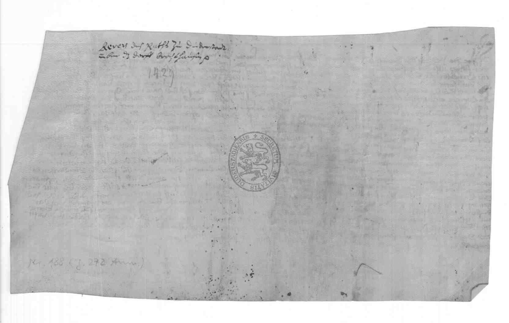| Regest: | Der Revers der Stadt zu Urkunde 186 |