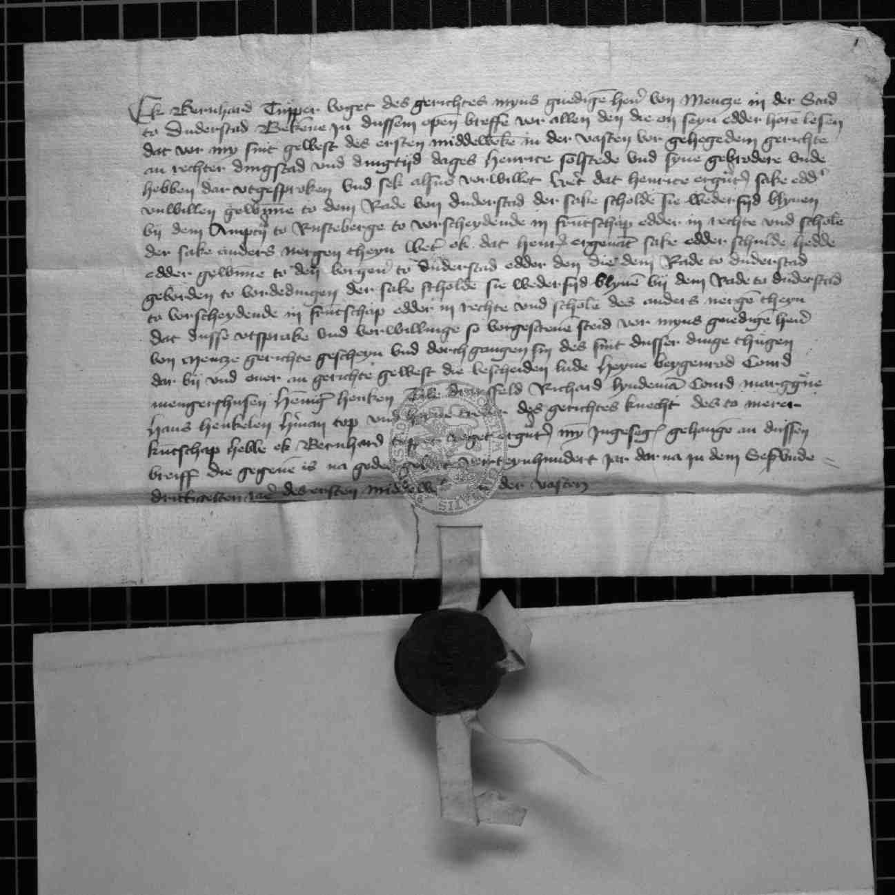 | Regest: | Bernhard Tüpper, Vogt zu Duderstadt, bezeugt, daß vor ihm Heinrich Sollstedt und dessen Bruder etwaige Streitigkeiten mit dem Rate vor dem Vogte zu Rusteberg und Streitigkeiten mit den Bürgern vor dem Rate gütlich auszugleichen versprochen habe |