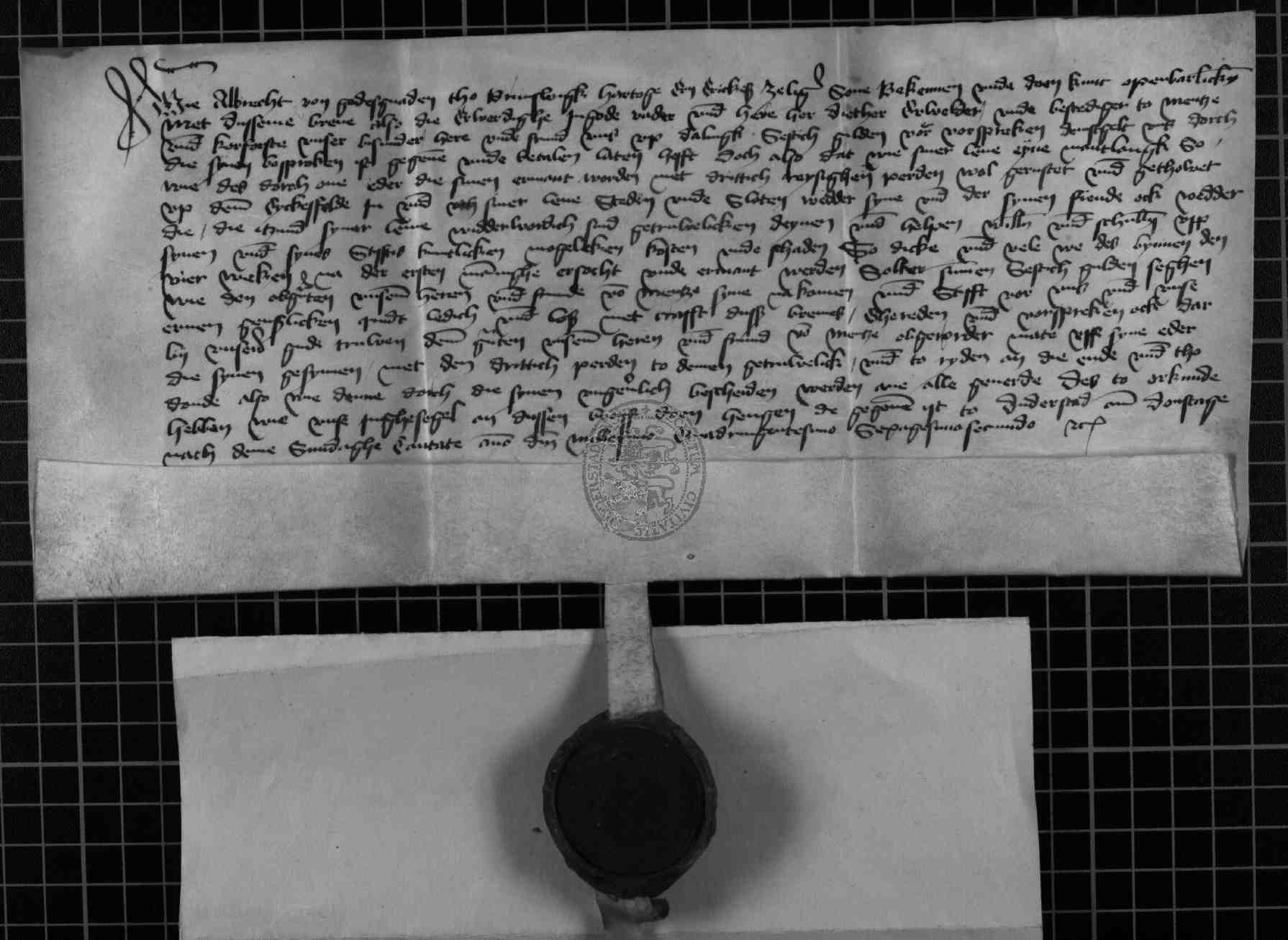 | Regest: | Herzog Albrecht von Braunschweig quittiert über 60 Gulden, die ihm Erzbischof Diether für Hilfe im Kriege zahlt |
