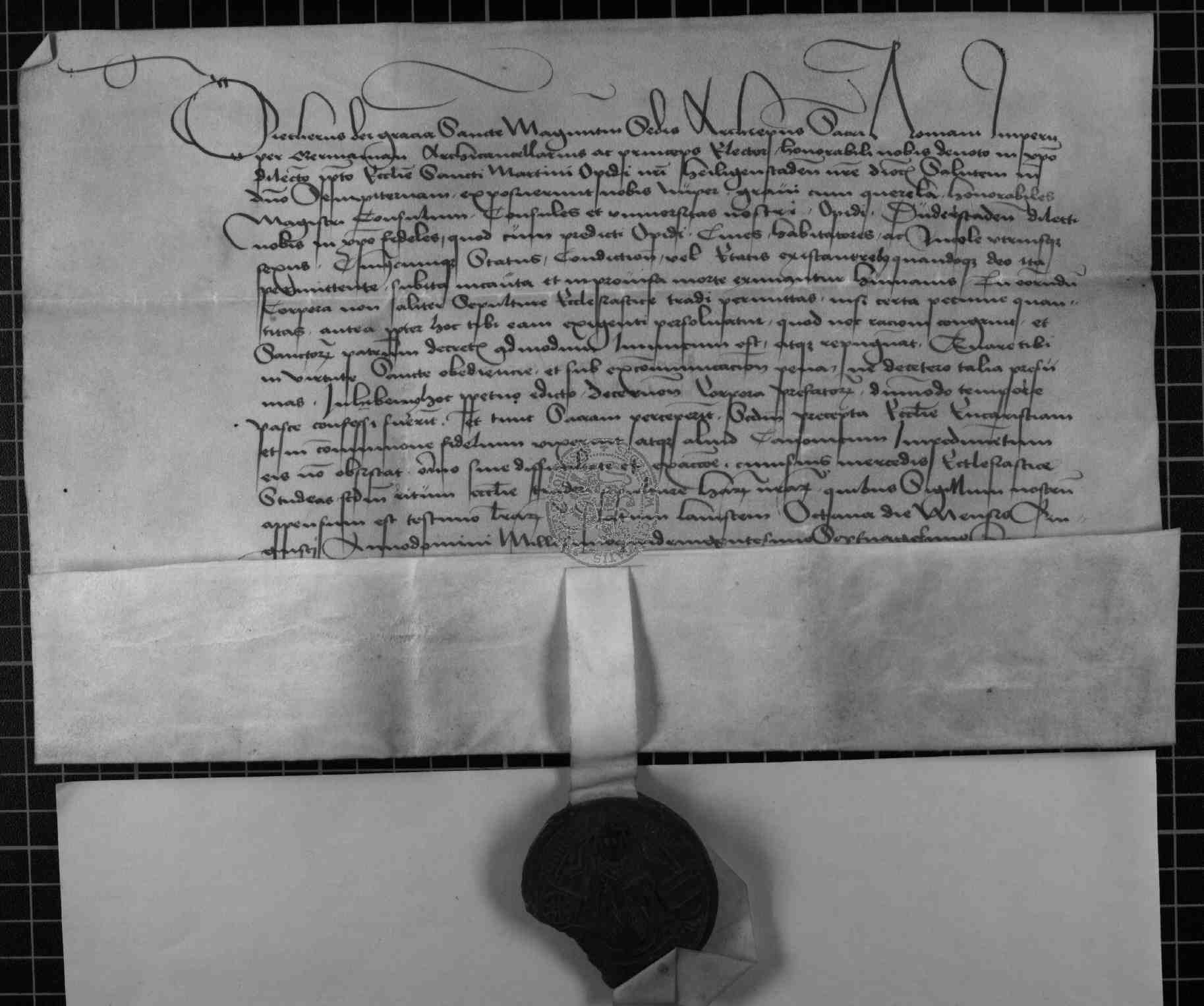 | Regest: | Erzbischof Dietrich untersagt infolge der Klagen der Stadt dem Propste des Martinsstiftes zu Heiligenstadt, die Erlaubnis des kirchlichen Begräbnisses plötzlich Verstorbener von einer Geldzahlung abhängig zu machen |