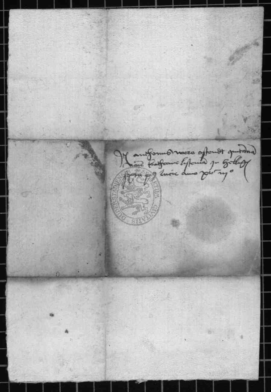 | Regest: | Katherina Listeman zu Heiligenstadt quittiert dem Rate zu Duderstadt über 9 Gulden Leibzins. Auf ihr Bitten hat ihr Schwager Hugolt diese Quittung untersiegelt |