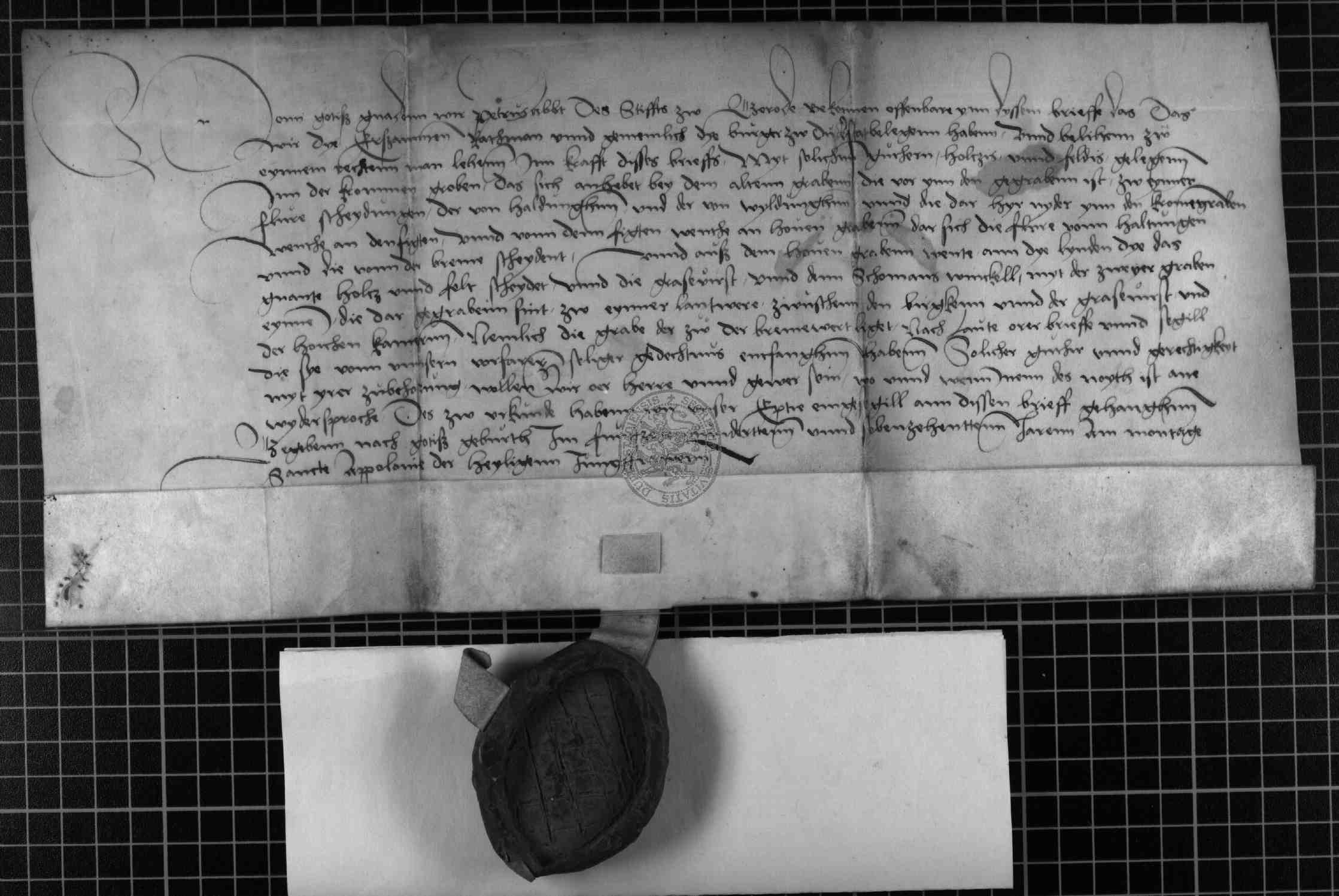 | Regest: | Petrus, Abt von Gerode, erneuert die Belehnung der Stadt mit Wald und anderen Grundstücken bei Haldungen (Hohlungen), Brehme und Wildungen |