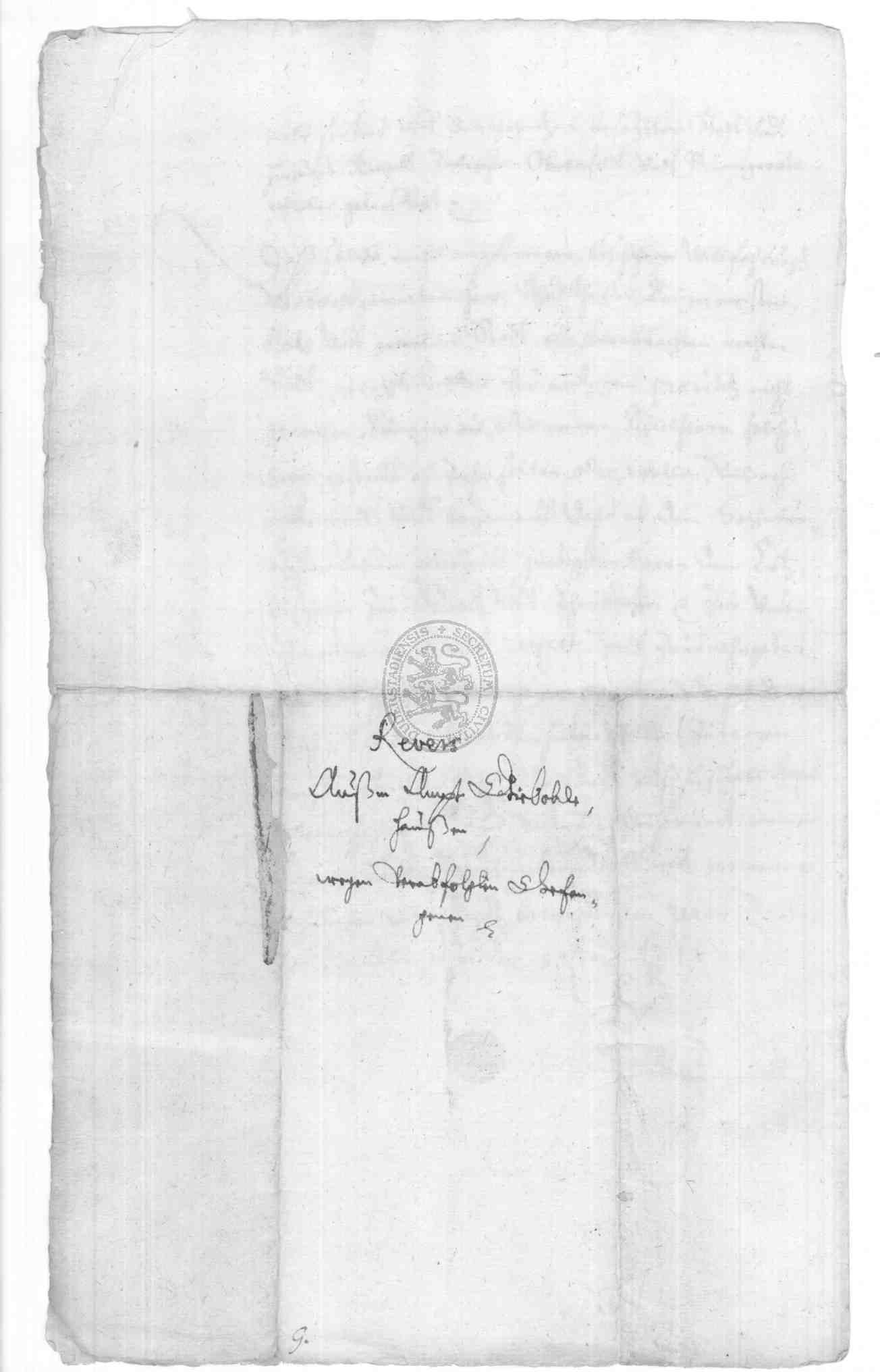 | Regest: | Der Gieboldehäuser Amtsvogt Kilian Drippel bekundet in einem Revers, daß der von Amts wegen erfolgte Transport eines Verbrechers durch das Gebiet der Stadt Duderstadt kein Eintrag (Praejudiz) Duderstädter Hoheitsrechte sei und erbietet sich, falls ein ähnlicher Fall vorkommen sollte, zu dem gleichen Entgegenkommen. Es handelt sich um den in Heiligenstadt verhafteten Gieboldehäuser Untertanen Erich Kohl aus Bilshausen, der daselbst Marie, Michael Hanenbergs Ehefrau, erschlagen hatte und ad locum commissi delicti ausgefolgt werden sollte |