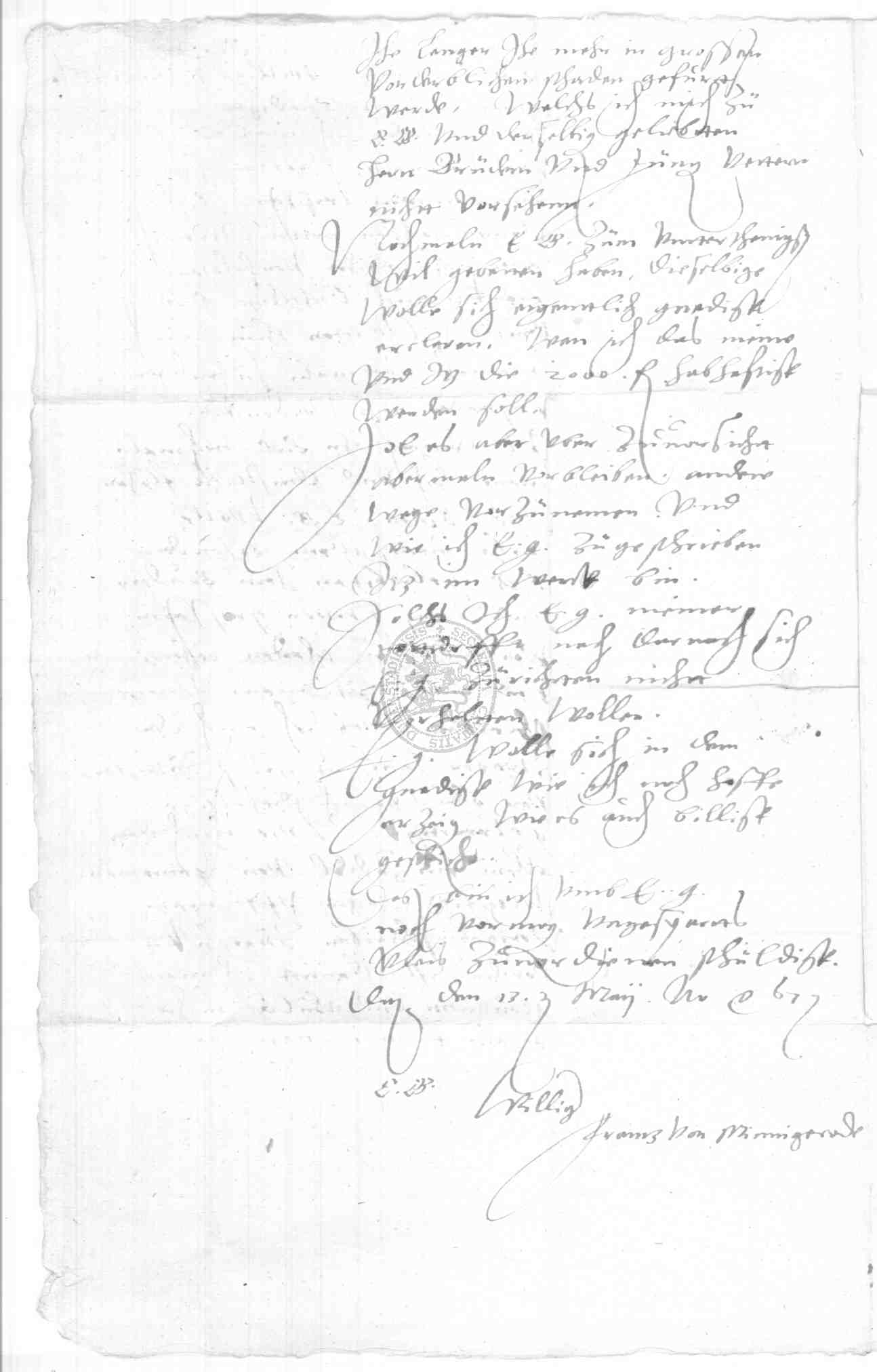 | Regest: | Franz von Minnigerode mahnt den Grafen Heinrich von Stolberg-Königstein um 2000 Gulden |