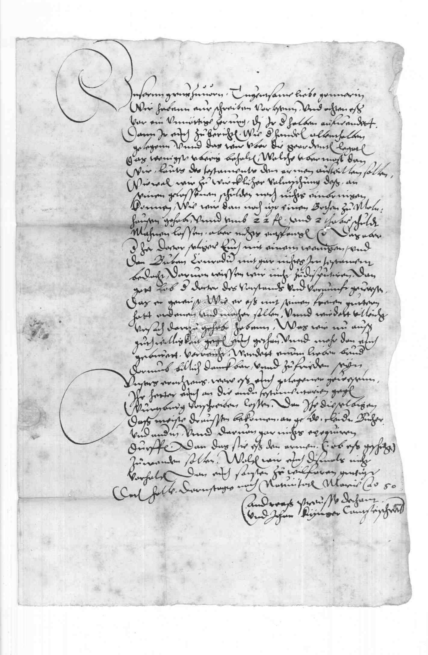 | Regest: | Andreas Preusse, Dechant, und Johann Krynger, Kanzleischreiber zu Halle, schreiben an die Barbara Heiecke, Witwe und Bürgerin zu Duderstadt, in einer Erbschaftssache |