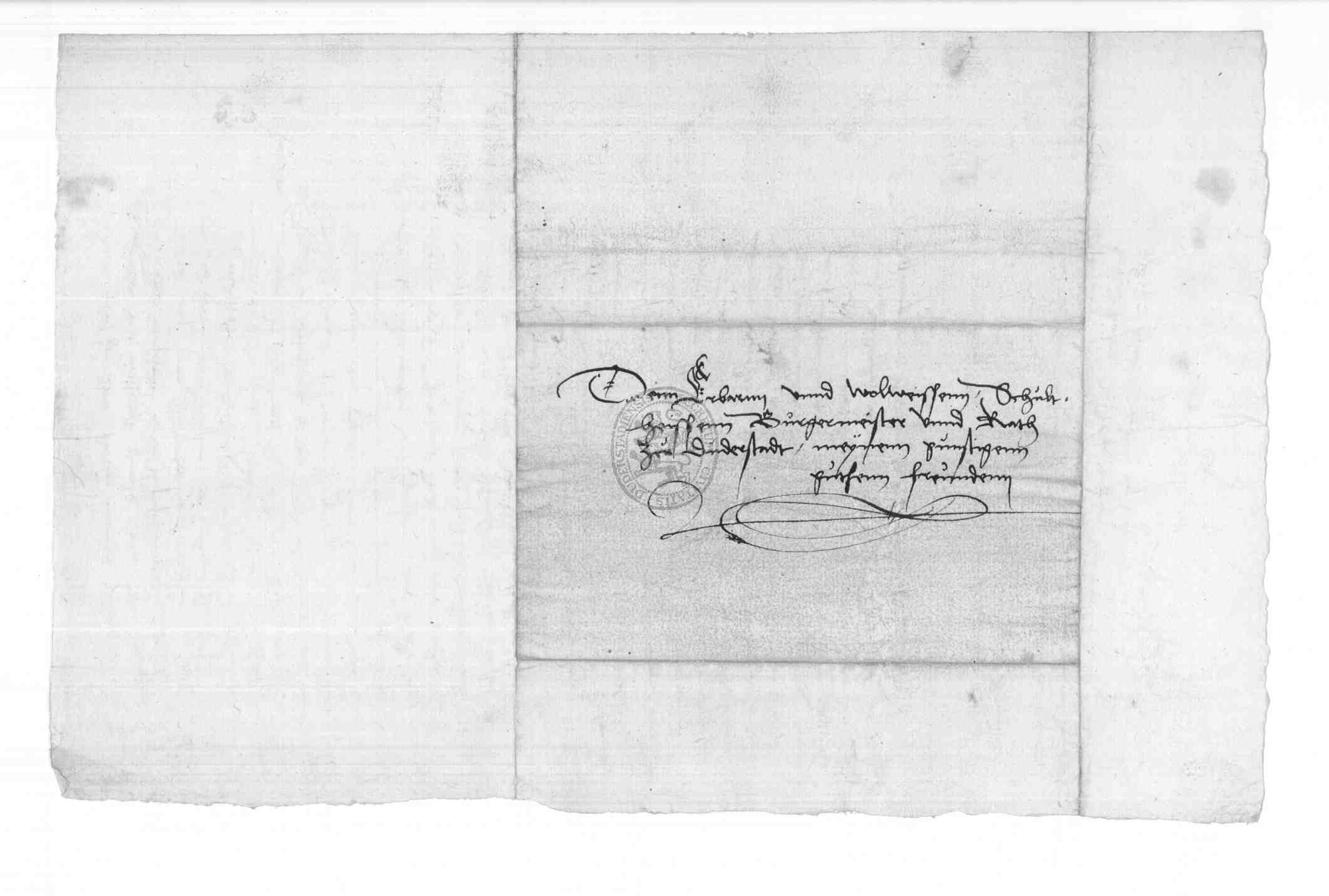 | Regest: | Der Mainzische Kommissarius Alexander Kindervater zu Heiligenstadt schreibt an den Duderstädter Rat: Nachdem Gottfried Stromeyer ohne Testament gestorben sei, habe er alle Güter in dessen Hause inventarisieren lassen und auch Hans Stromeyer gebeten, anzugeben, was der Verstorbene an Liegenschaften gehabt hätte. Hans Stromeyer aber habe sich geweigert und ihn an den Rat verwiesen. K. wiederholt jetzt seine Bitte, der Rat möge ihn ein auf seine Kosten herzustellendes Verzeichnis durch den Überbringer diese Briefes zusenden |