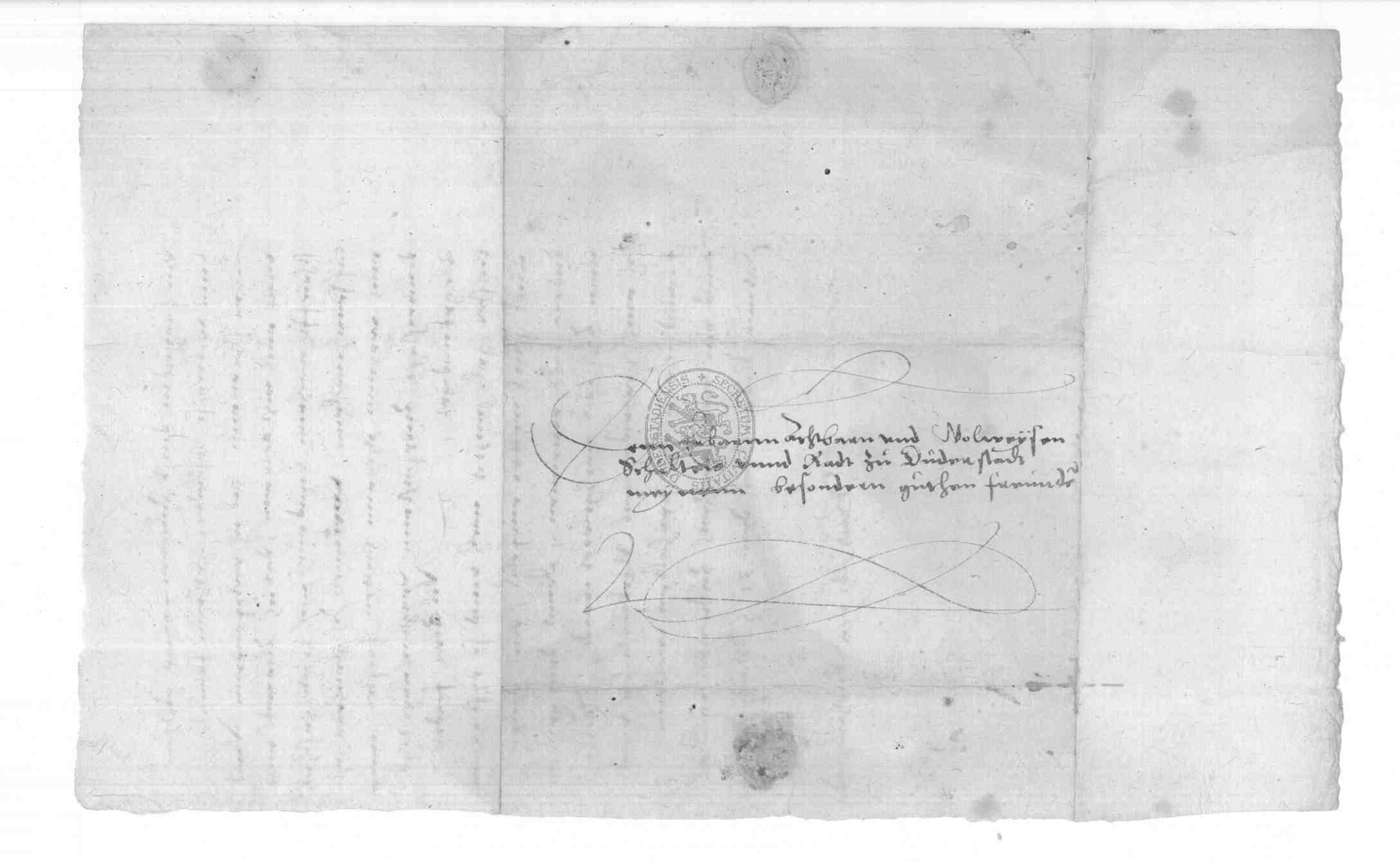 | Regest: | Barthold von Wintzingerode schreibt an Schultheiß, Bürgermeister und Rat zu Duderstadt betreffend Ansetzung eines Vergleichungstages |