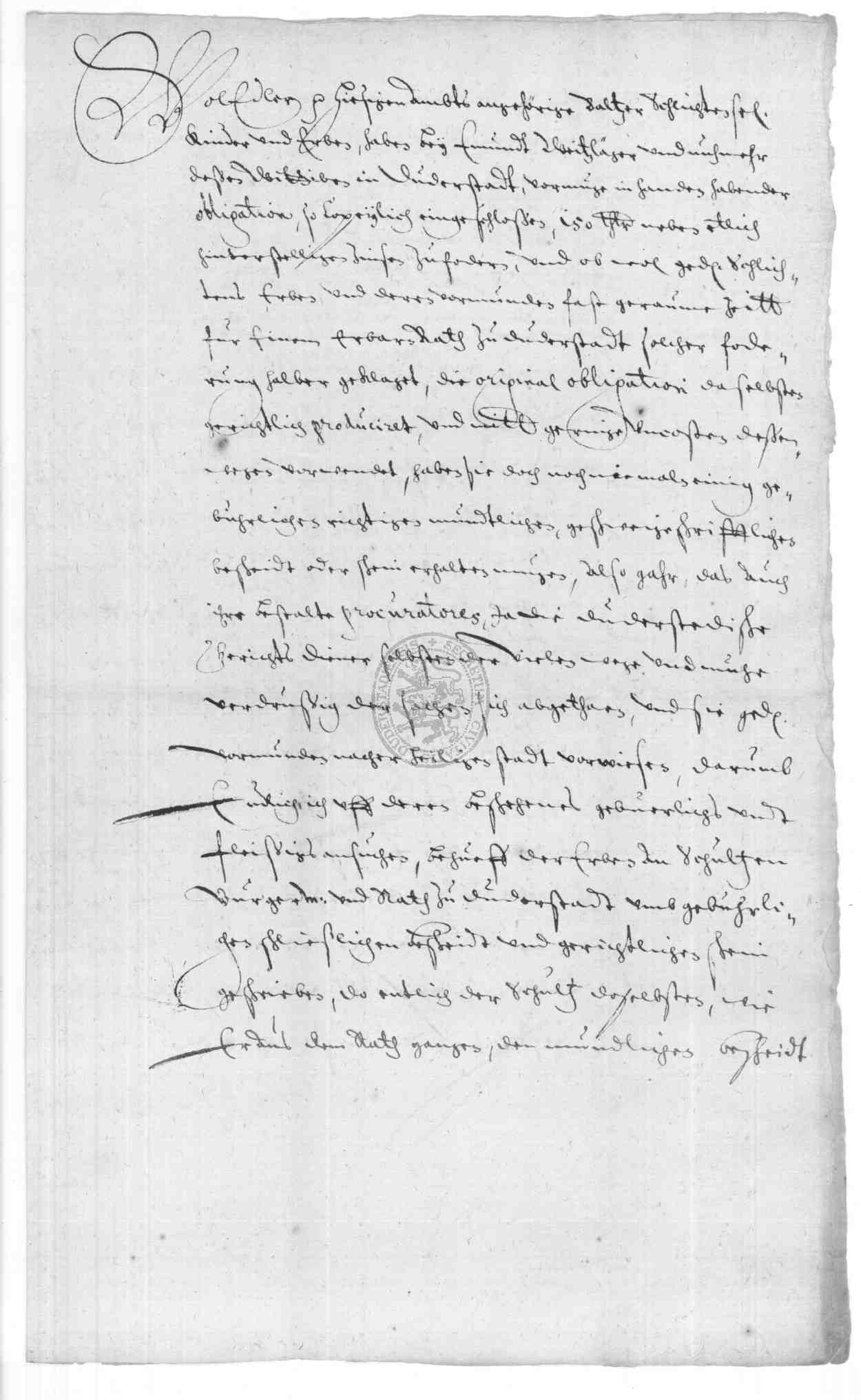 | Regest: | Fürstliche Kanzlei zu Osterode schreibt an den Rat in einer Streitsache der Kinder des verstorbenen Balthasar Schlichten zu Ebergötzen gegen den Bürger Edmund Witschleger |